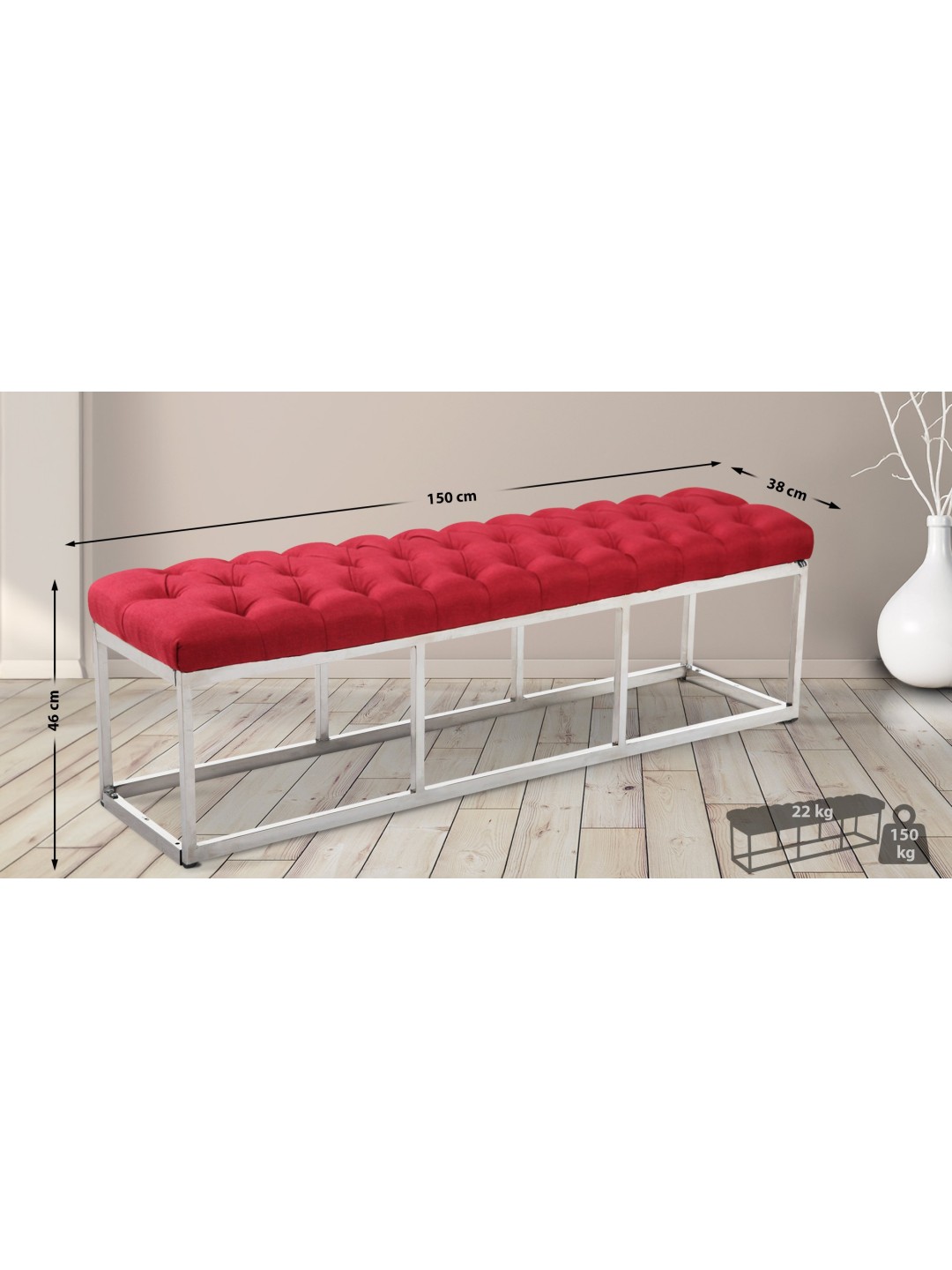 Banco Amun tela acero inoxidable 150 cm, rojo