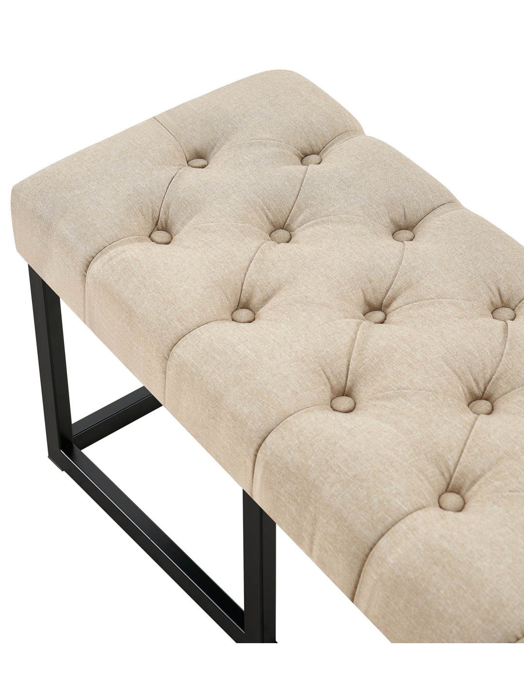 El banco tiene una estructura estable de metal negro mate. Los tirantes transversales lo hacen tan estable que se puede cargar con seguridad hasta 150 kilogramos. Los suelos sensibles no se dañan gracias a los protectores de suelo.
