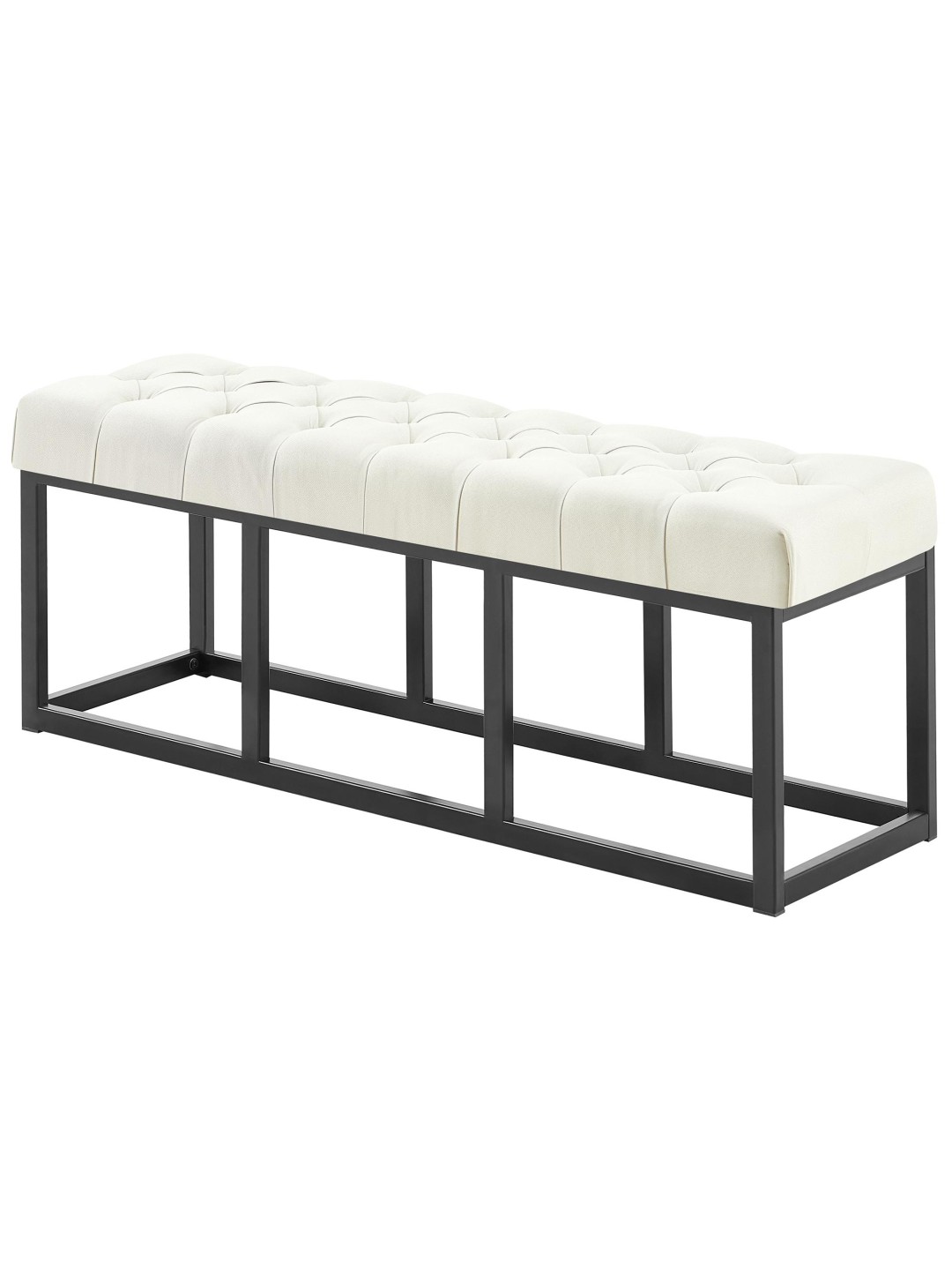 El banco tiene una estructura estable de metal negro mate. Los tirantes transversales lo hacen tan estable que se puede cargar con seguridad hasta 150 kilogramos. Los suelos sensibles no se dañan gracias a los protectores de suelo.