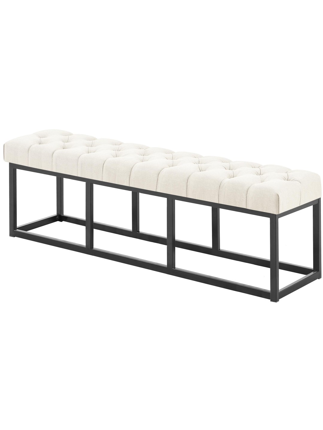 El banco tiene una estructura estable de metal negro mate. Los tirantes transversales lo hacen tan estable que se puede cargar con seguridad hasta 150 kilogramos. Los suelos sensibles no se dañan gracias a los protectores de suelo.