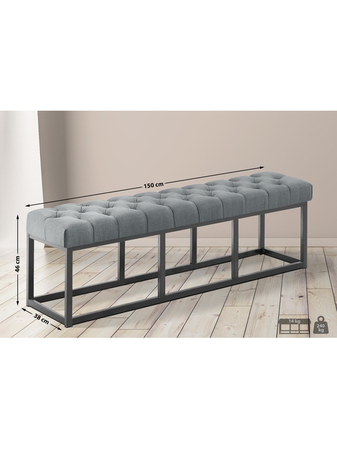 El banco tiene una estructura estable de metal negro mate. Los tirantes transversales lo hacen tan estable que se puede cargar con seguridad hasta 150 kilogramos. Los suelos sensibles no se dañan gracias a los protectores de suelo.