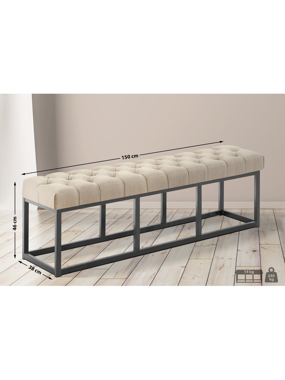 El banco tiene una estructura estable de metal negro mate. Los tirantes transversales lo hacen tan estable que se puede cargar con seguridad hasta 150 kilogramos. Los suelos sensibles no se dañan gracias a los protectores de suelo.