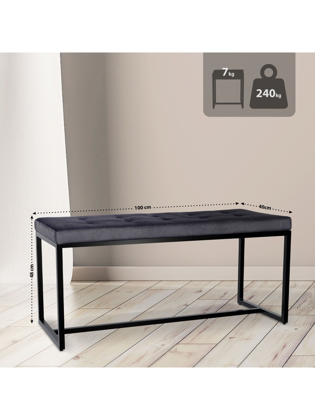 El banco se sostiene de forma estable sobre una estructura de cuatro patas. El banco está disponible con revestimiento de piel sintética, terciopelo o tela. La robusta elaboración del hierro con recubrimiento en polvo garantiza una calidad y fiabilidad duraderas.