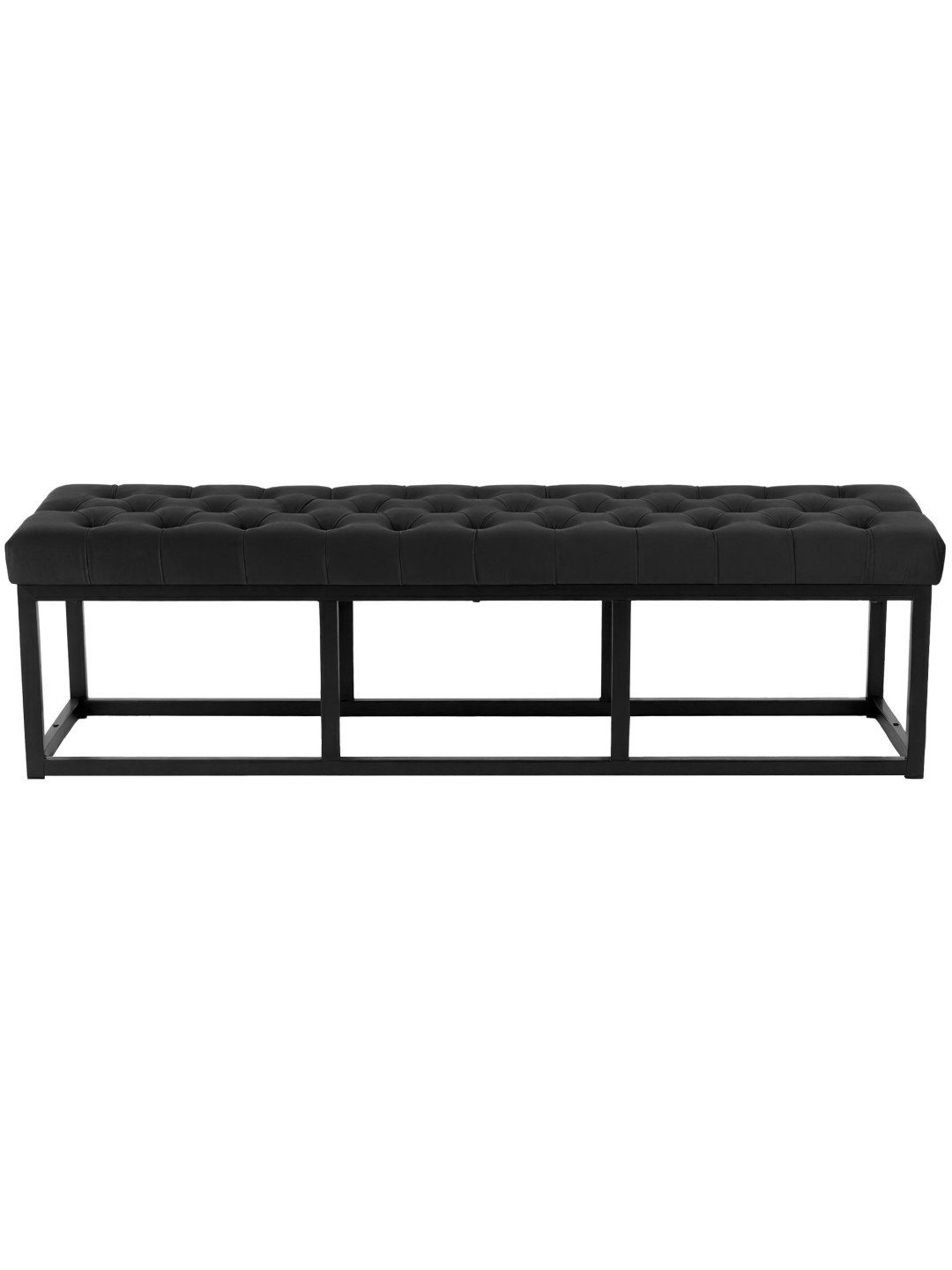 Con su superficie de terciopelo acolchado, el banco se caracteriza por un aspecto elegante que realza cualquier habitación. La robusta estructura de metal negro mate garantiza estabilidad y una gran capacidad de carga de hasta 200 kg. Los prácticos protectores de suelo protegen de forma fiable sus suelos contra arañazos.