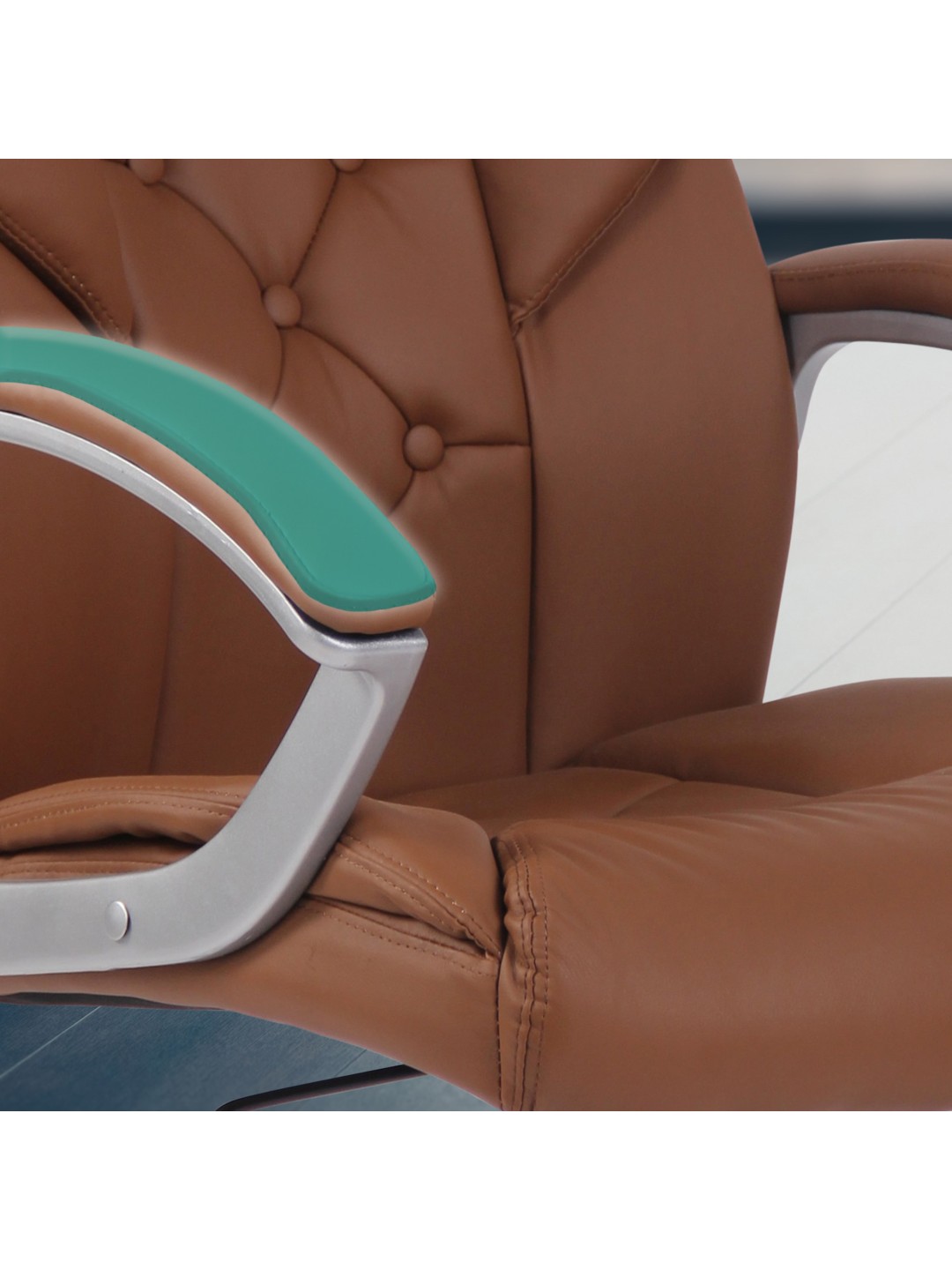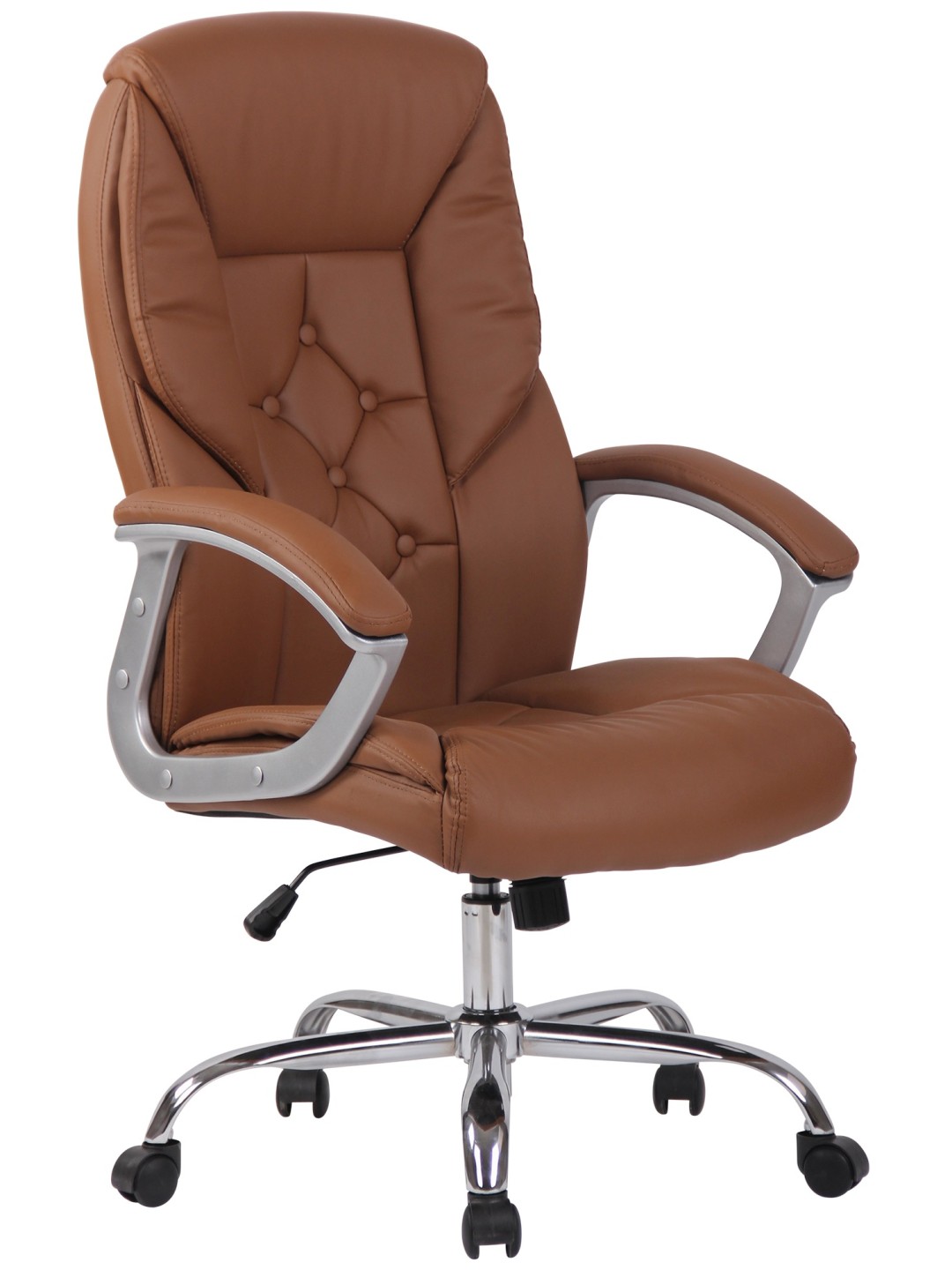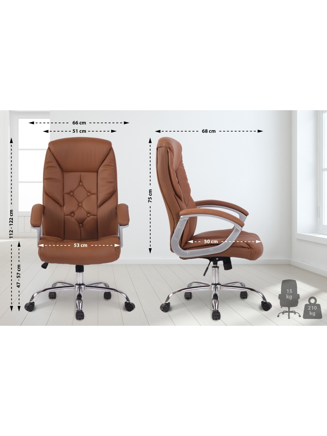 Esta silla de oficina es ideal para personas altas y pesadas, ya que el resorte de presión de gas está diseñado para un uso prolongado de hasta 210 kg. El sillón ejecutivo Rodeo es un sillón de oficina exclusivo con tapizado y tapizado de piel sintética de muy alta calidad. Las fundas de cuero artificial tienen la ventaja de que son elásticas y se estiran suavemente cuando se alivia la carga. Esto no sólo tiene un aspecto más bonito, sino que también aumenta la vida útil de la funda del asiento. La estructura es de metal con aspecto cromado y, por lo tanto, es muy estable. Gracias a la altura ajustable del asiento y a los agradables reposabrazos acolchados se garantiza un asiento ergonómico. La altura del asiento se puede ajustar de forma continua mediante la palanca situada debajo del asiento. Los elegantes botones decorativos en el respaldo y en el asiento contribuyen a un diseño elegante. El mecanismo basculante incorporado garantiza una mayor libertad de movimiento. La silla de oficina se sostiene de forma segura sobre cinco ruedas de funcionamiento suave.