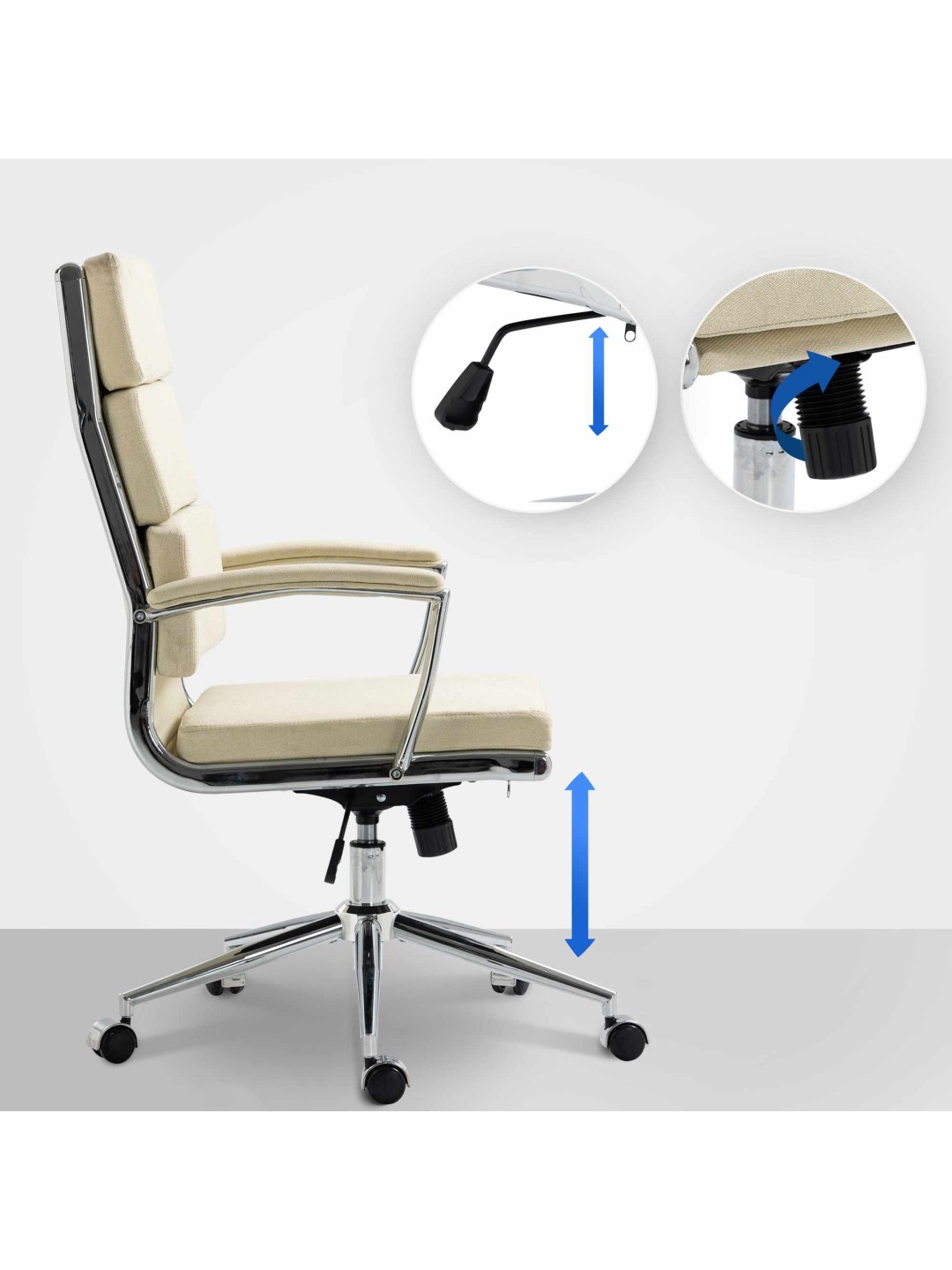 La silla de oficina Cleveland combina un diseño ergonómico con comodidad individual y una apariencia elegante. Es el complemento perfecto para cualquier oficina donde la salud y el bienestar en el lugar de trabajo sean importantes. El respaldo triple acolchado y la forma ergonómica favorecen su posición natural al sentarse. Con el asiento regulable en altura, la función basculante ajustable y las ruedas giratorias de 360°, la silla se adapta de forma flexible a sus necesidades. La elección entre revestimiento de piel auténtica, polipiel o tela le permite personalizar el diseño según su gusto personal. El marco cromado ofrece estabilidad y una larga vida útil. Con su amplio asiento, el Cleveland ofrece una comodidad óptima incluso en largas jornadas de trabajo.