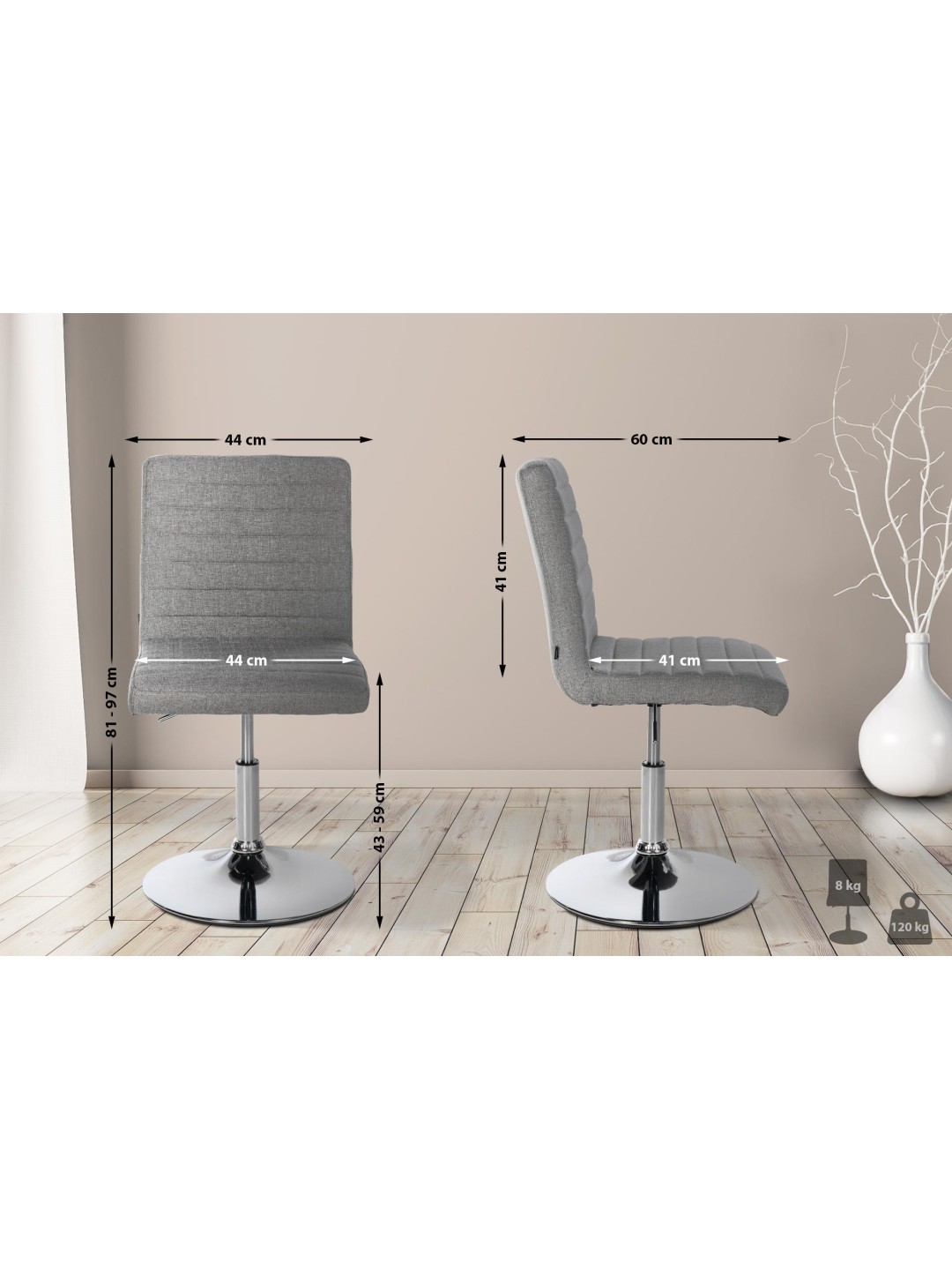 Descubre la combinación ideal de estilo y funcionalidad con el juego de sillas de comedor Elvas. La combinación de una suave funda de tela, costuras decorativas y una estructura de metal cromado encaja perfectamente en los conceptos de vivienda modernos. Estas sillas no sólo son atractivas visualmente, sino también versátiles en su funcionalidad: ya sea giradas, subidas o bajadas, se adaptan a cualquier situación. El diseño ergonómico favorece una postura cómoda al sentarse, mientras que la construcción robusta proporciona un uso prolongado. El montaje es rápido y sencillo gracias a las instrucciones de montaje incluidas. Póngase cómodo en las sillas Elvas que redefinen el diseño y la comodidad en su comedor.
