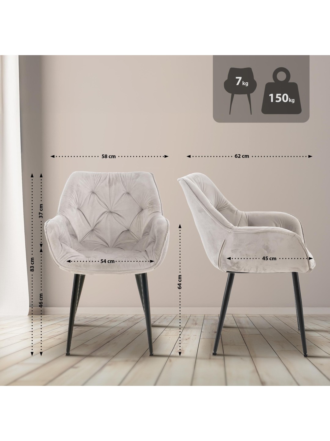 Juego de 2 sillas Tanna Velvet