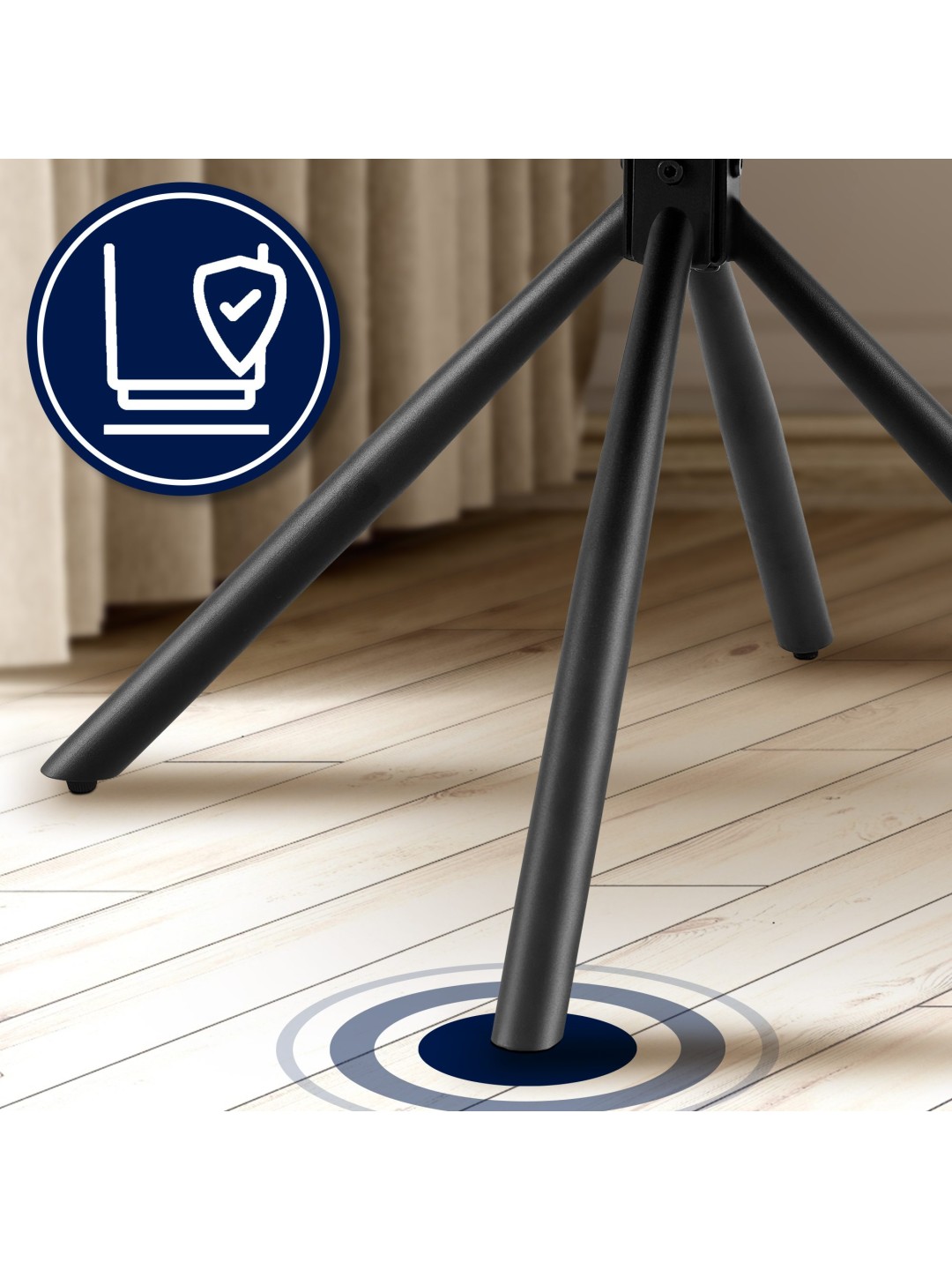 La base de esta silla tipo sillón es la estructura de cuatro patas de metal con recubrimiento en polvo en color negro mate. La silla de comedor Tipton puede soportar hasta 130 kilogramos sin dudarlo. Los protectores de suelo evitan que los suelos sensibles se rayen.