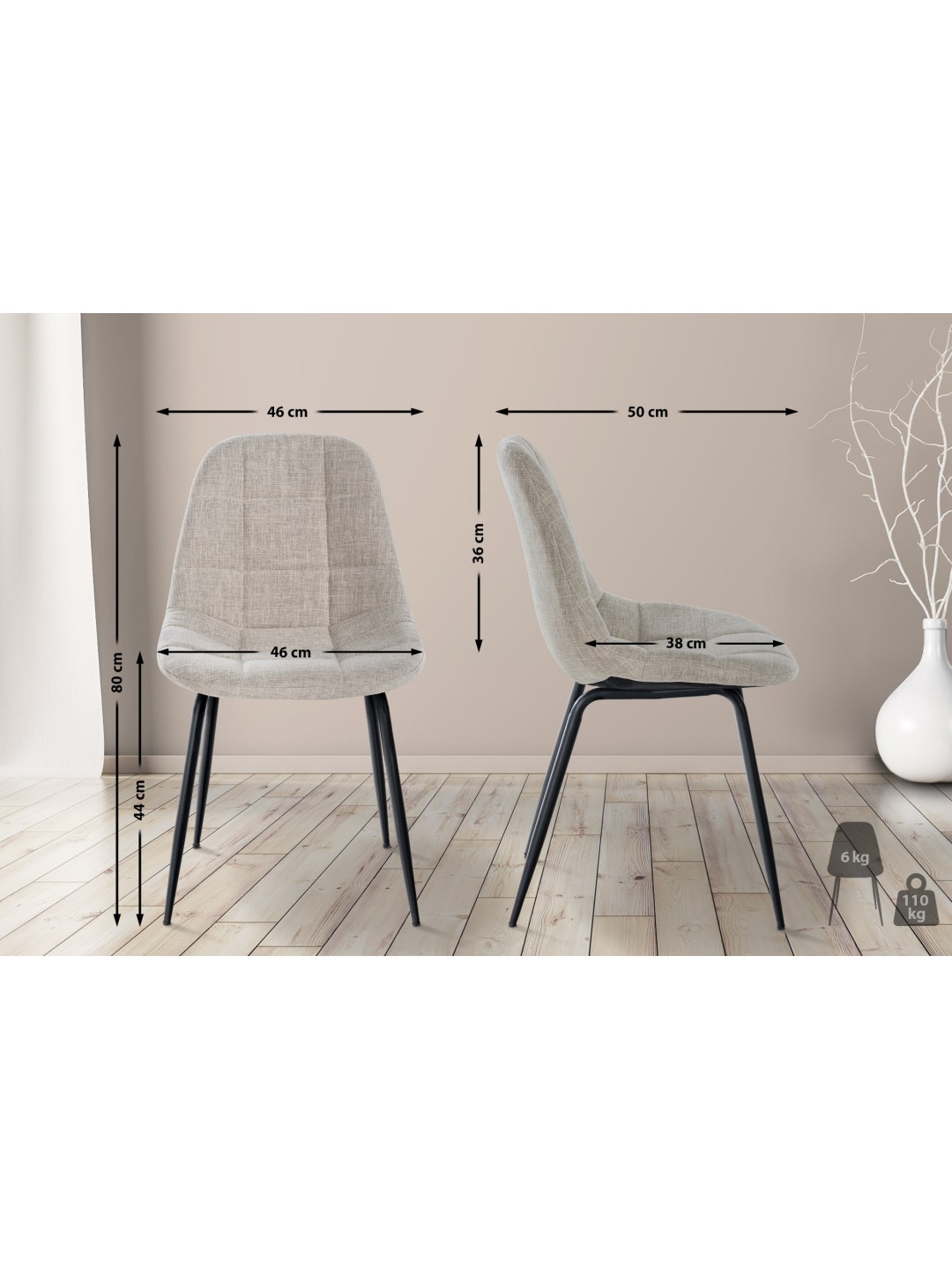 Conjunto de 2 sillas Tom tela, crema