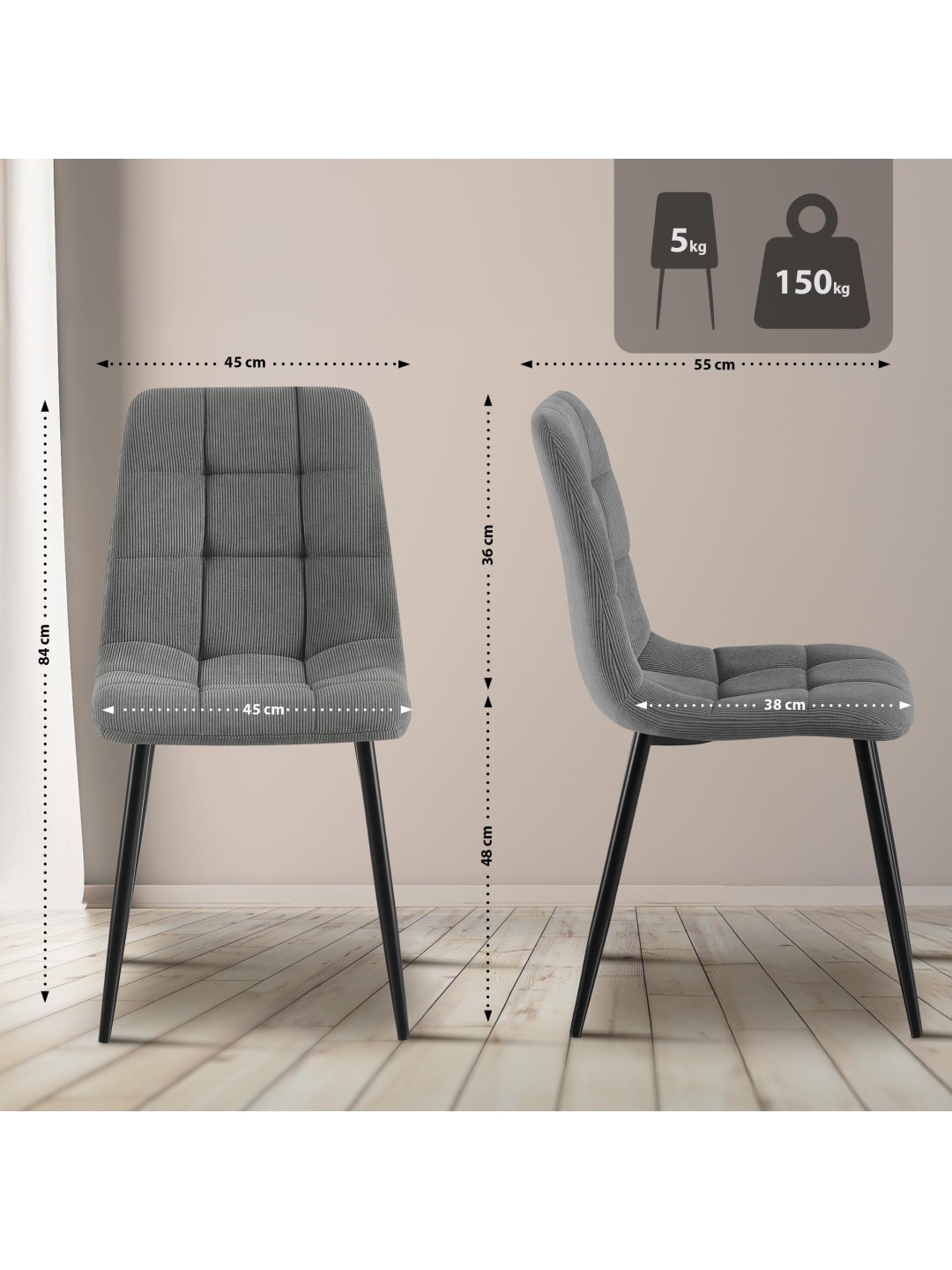 Juego de 2 sillas de comedor Antibes Cord, gris