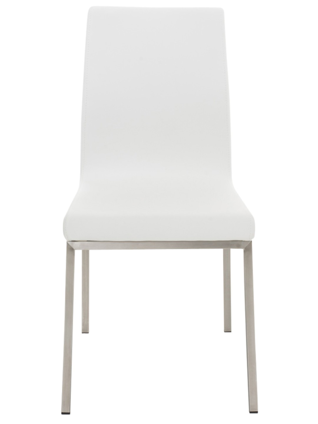 Juego de 2 sillas de comedor de acero inoxidable ColmarLas sillas de comedor de diseño Colmar son asientos cómodos, sólidos y al mismo tiempo elegantes para el uso diario. Son el complemento perfecto para habitaciones modernas y sus colores fuertes desprenden un encanto juvenil. El amplio asiento y el respaldo alto permiten sentarse cómodamente incluso durante largos períodos de tiempo. Los asientos agradablemente acolchados y tapizados en piel sintética prometen comodidad y un aspecto simplemente elegante. Gracias a los materiales de fácil cuidado, los asientos también se pueden limpiar de forma rápida y sencilla. Las prácticas sillas de comedor Colmar son particularmente estables sobre sus cuatro patas de acero inoxidable.