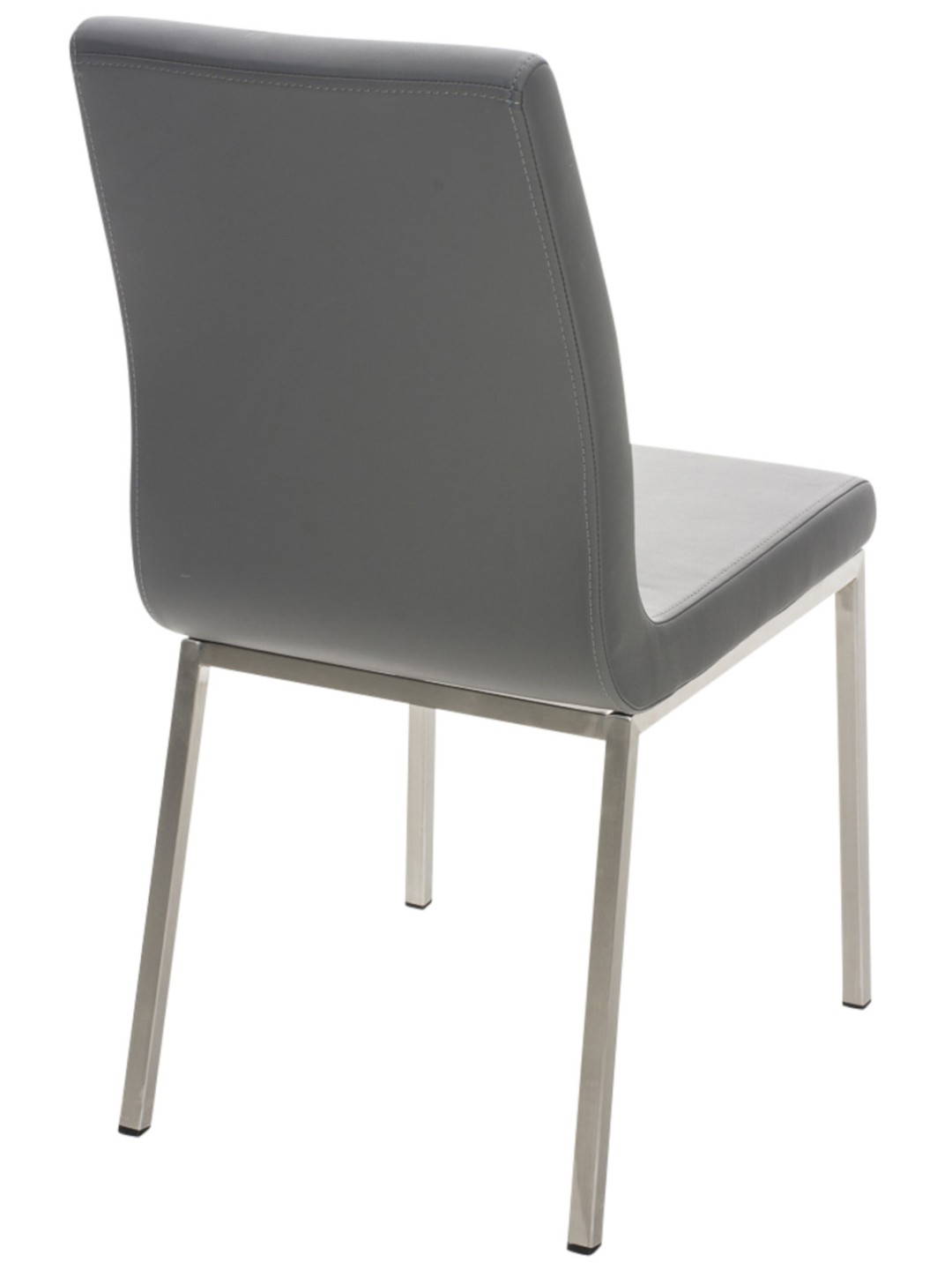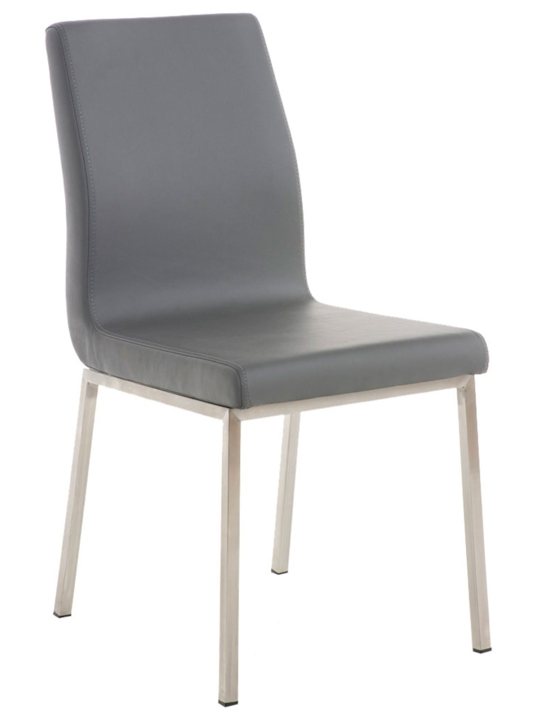 Juego de 2 sillas de comedor de acero inoxidable ColmarLas sillas de comedor de diseño Colmar son asientos cómodos, sólidos y al mismo tiempo elegantes para el uso diario. Son el complemento perfecto para habitaciones modernas y sus colores fuertes desprenden un encanto juvenil. El amplio asiento y el respaldo alto permiten sentarse cómodamente incluso durante largos períodos de tiempo. Los asientos agradablemente acolchados y tapizados en piel sintética prometen comodidad y un aspecto simplemente elegante. Gracias a los materiales de fácil cuidado, los asientos también se pueden limpiar de forma rápida y sencilla. Las prácticas sillas de comedor Colmar son particularmente estables sobre sus cuatro patas de acero inoxidable.