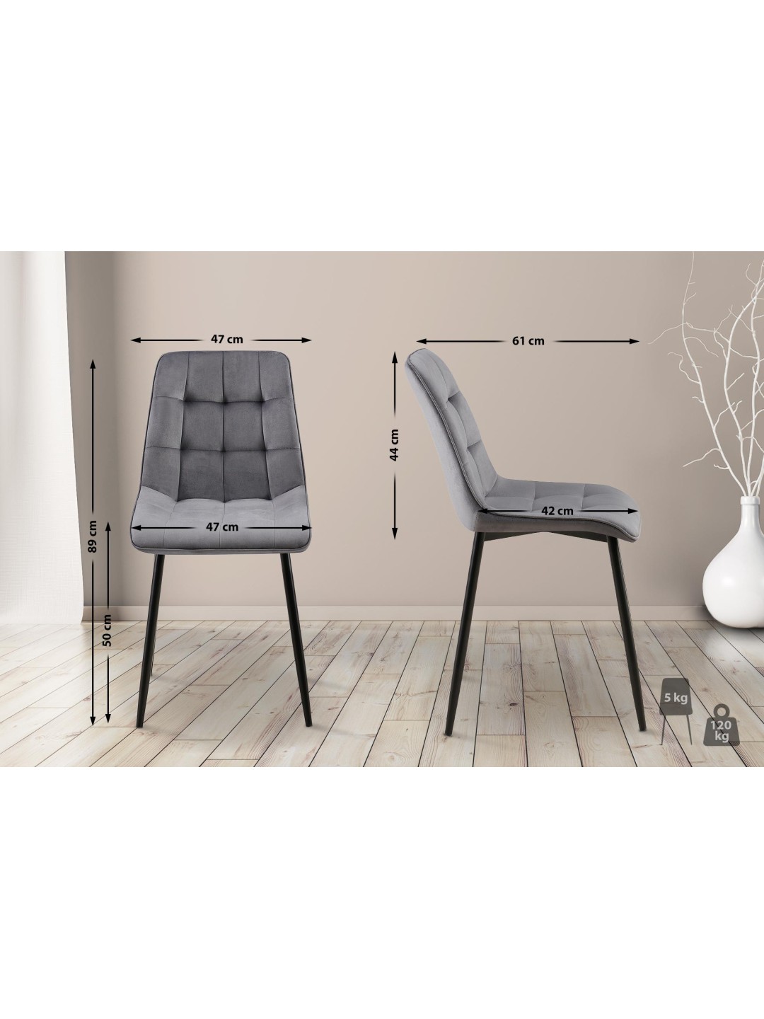 Juego de 2 sillas de comedor Gifford terciopelo, gris oscuro