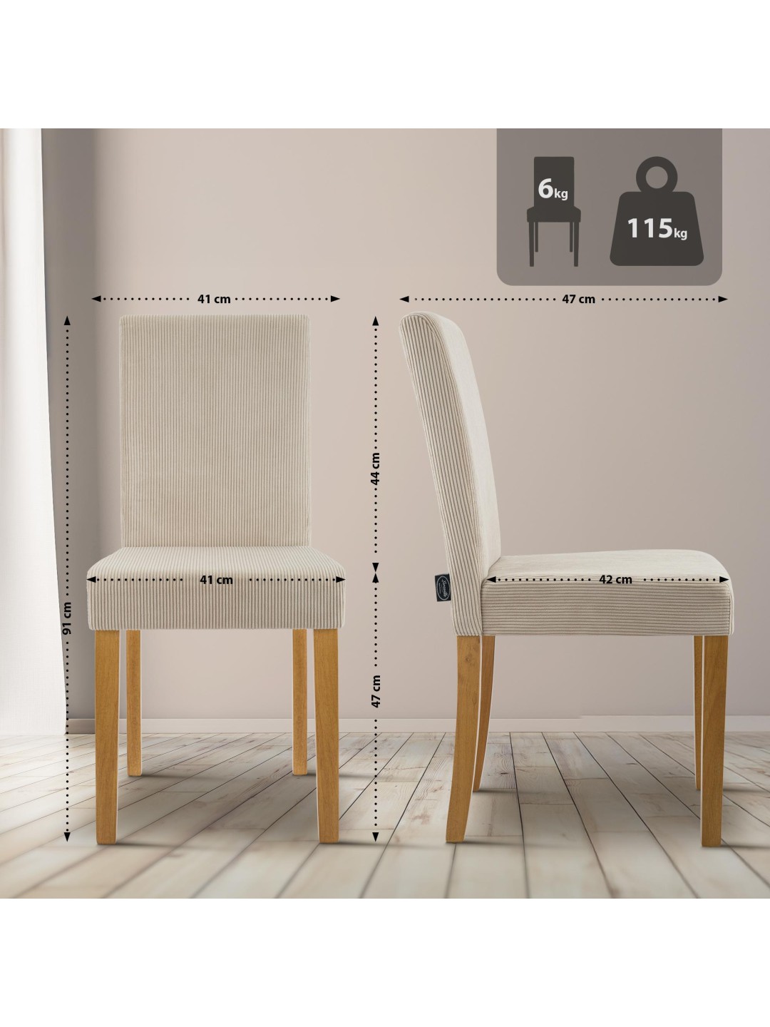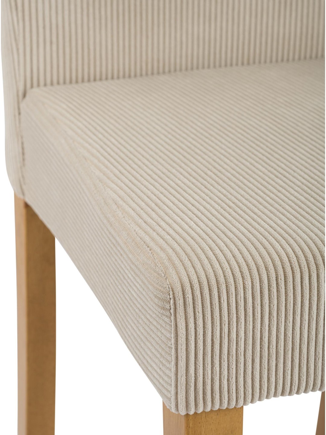 Las sillas de comedor Ina ofrecen un gran confort y un aspecto moderno y atemporal. El asiento y el respaldo totalmente acolchados tienen una elegante funda de pana y garantizan un asiento cómodo.