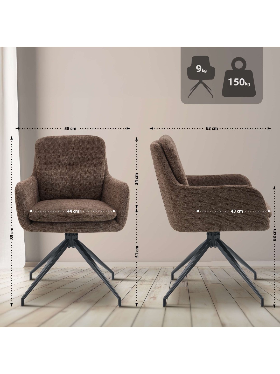 Juego de 2 sillas de comedor tela Pickett, marrón