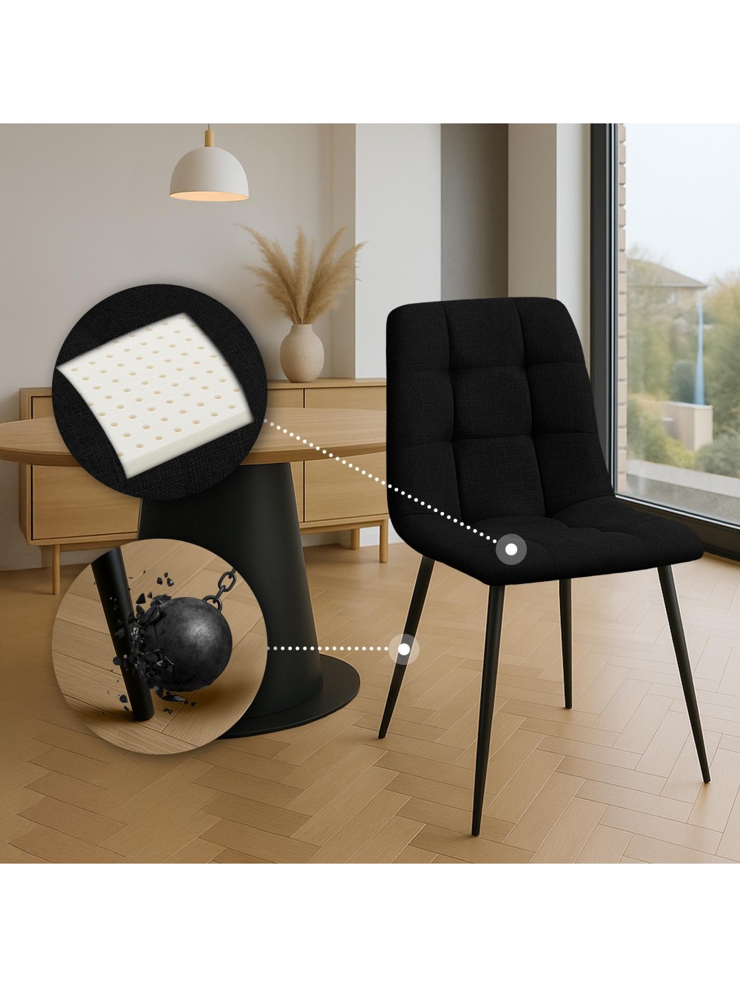 Este juego compuesto por dos sillas de comedor Tilde combina un gran confort con un aspecto moderno y atemporal. Estas sillas tapizadas son una excelente opción para la mesa del comedor, la cocina, la sala de estar, pero también para otros fines.