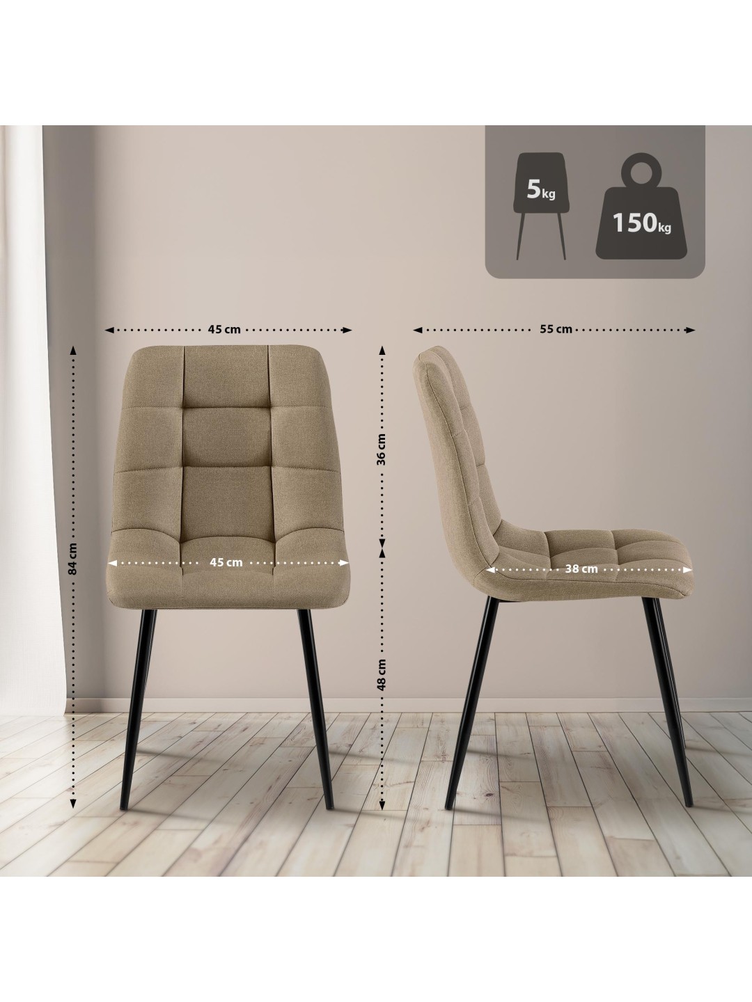 Este juego compuesto por dos sillas de comedor Tilde combina un gran confort con un aspecto moderno y atemporal. Estas sillas tapizadas son una excelente opción para la mesa del comedor, la cocina, la sala de estar, pero también para otros fines.