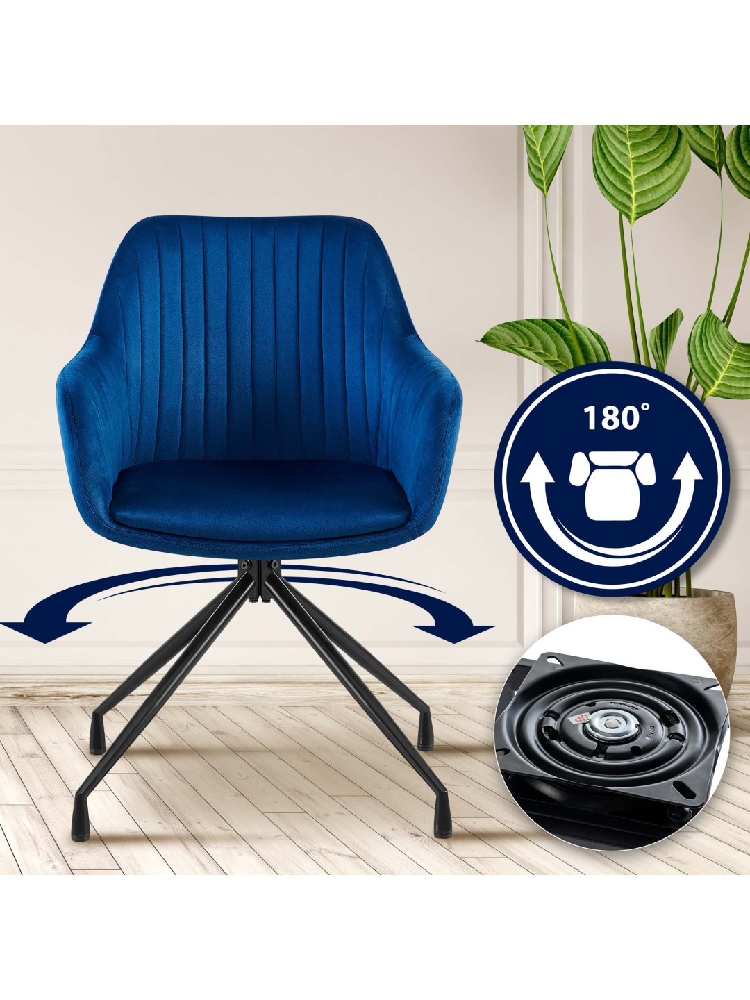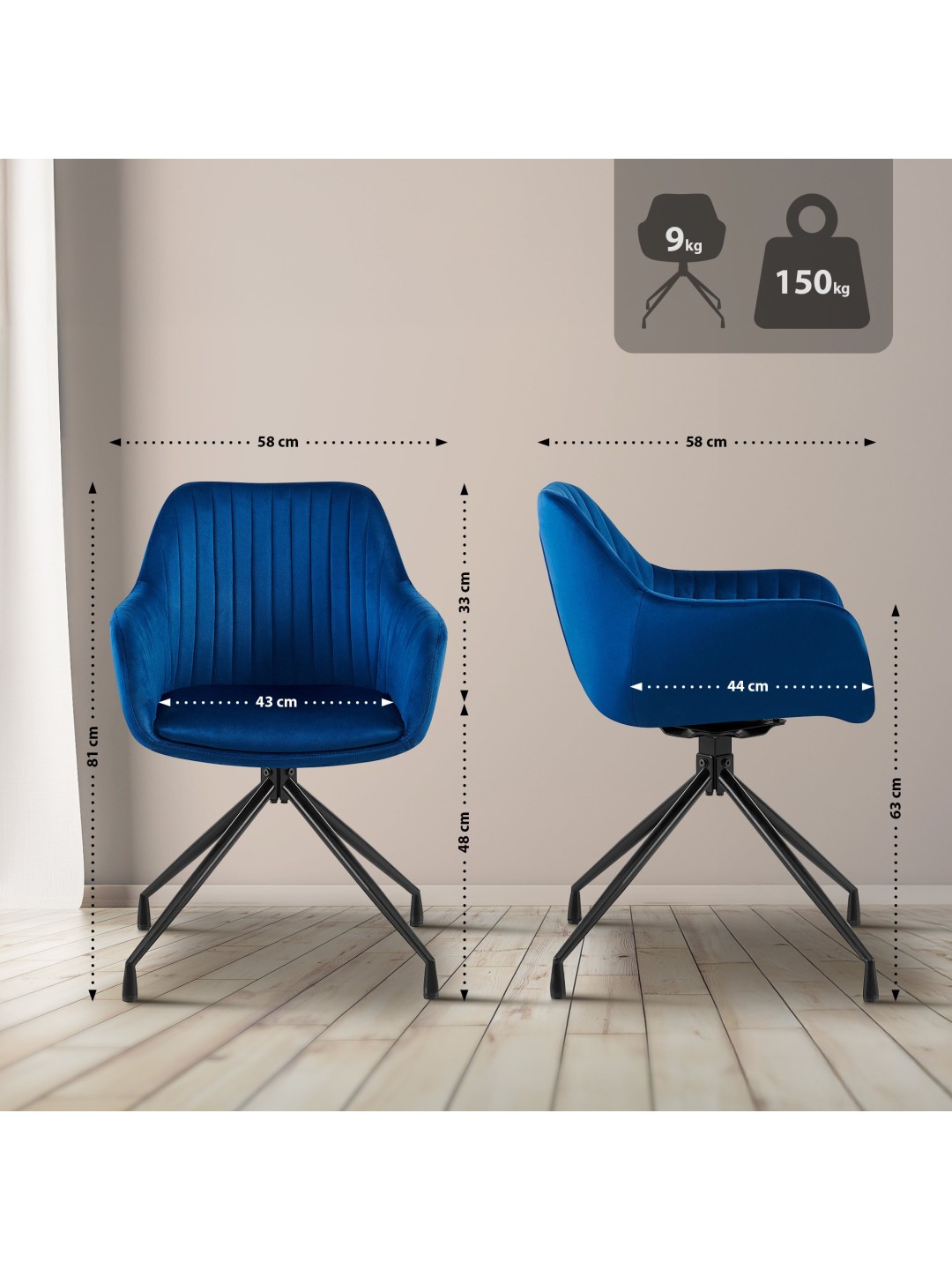 La práctica función giratoria permite girar el asiento 180 grados y proporciona libertad de movimiento adicional. La estabilidad está garantizada por el marco de cuatro patas de metal negro mate con recubrimiento en polvo, que ofrece una capacidad de carga máxima de hasta 150 kg.
