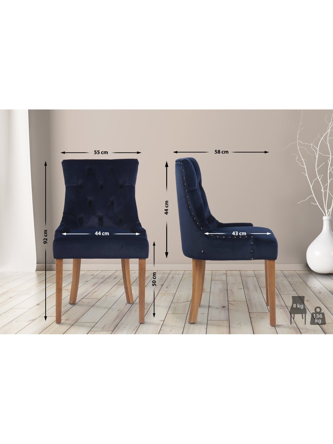 Su ambiente se verá amenizado con estilo con el juego de 4 sillas de comedor de terciopelo Aberdeen. Los asientos tapizados están revestidos de terciopelo y tienen bonitas costuras y botones decorativos. Este juego de sillas es un complemento elegante para el comedor, la cocina y otros espacios habitables. Cada silla se apoya en una estructura de madera de caucho de cuatro patas y crea un ambiente acogedor.