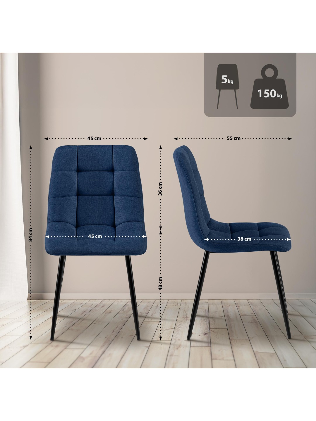 Juego de 4 sillas de comedor tela Antibes, azul