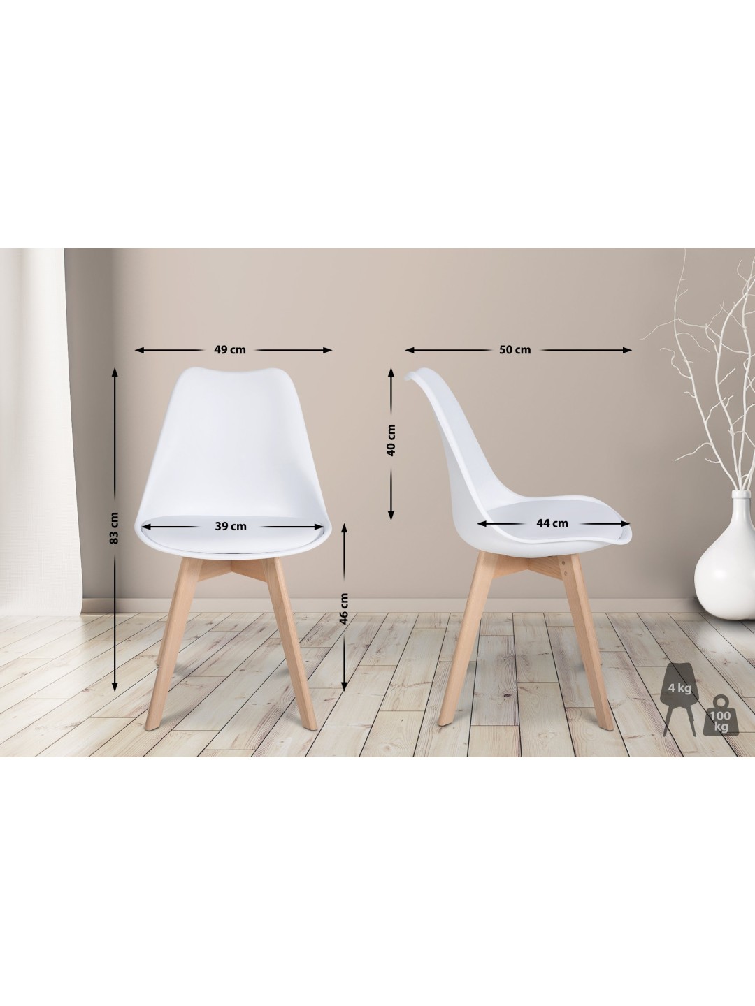 El respaldo soporta de forma óptima su columna. La estructura de la silla está hecha de madera de alta calidad y le confiere estabilidad y encanto natural. El asiento está hecho de piel sintética, que no sólo es visualmente atractivo, sino también fácil de cuidar y extremadamente duradero.