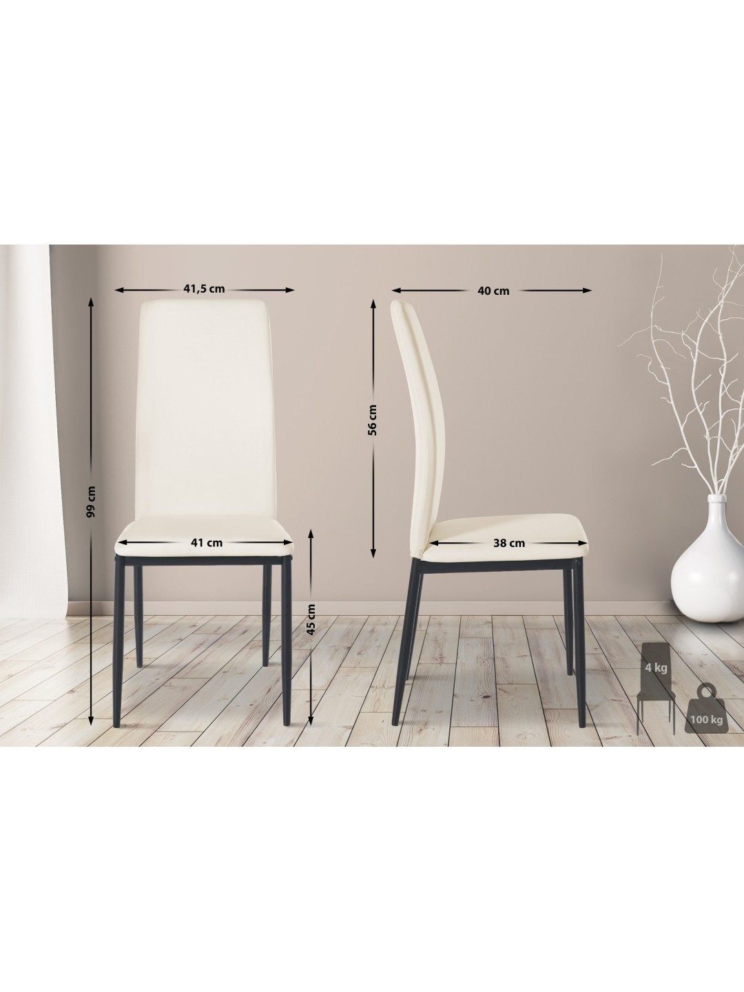 Juego de 6 sillas de comedor Savino piel sintética, crema