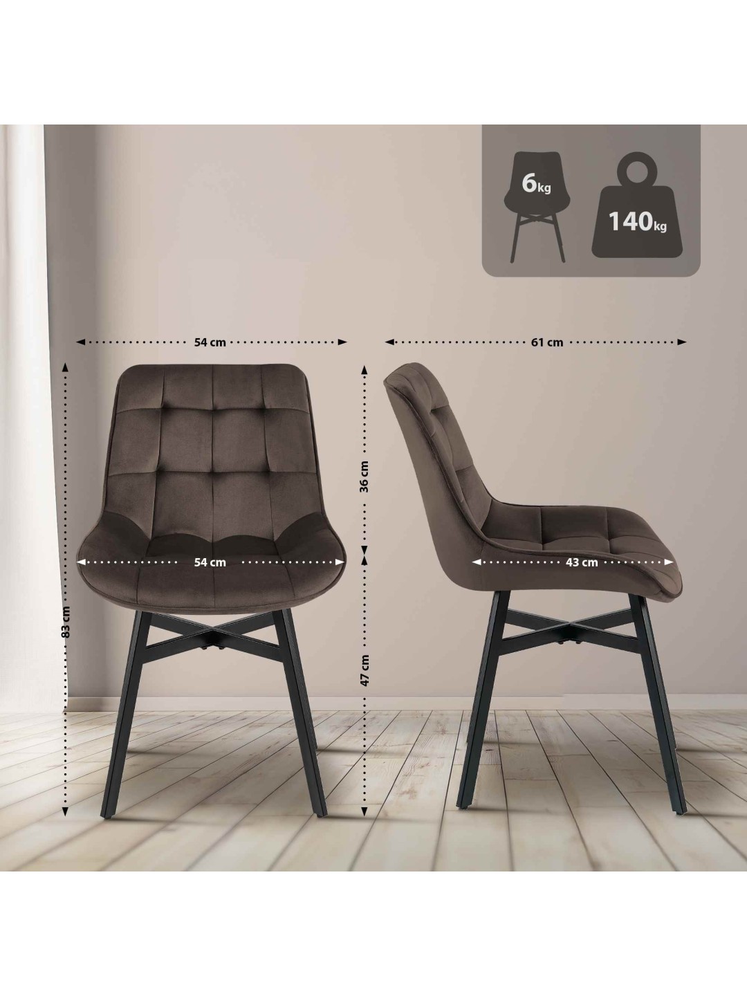 La base de esta silla de comedor es la estable estructura de cuatro patas de metal negro. Esto significa que la silla Colby puede cargarse con seguridad hasta 140 kilogramos. Los protectores de suelo evitan daños en suelos sensibles.