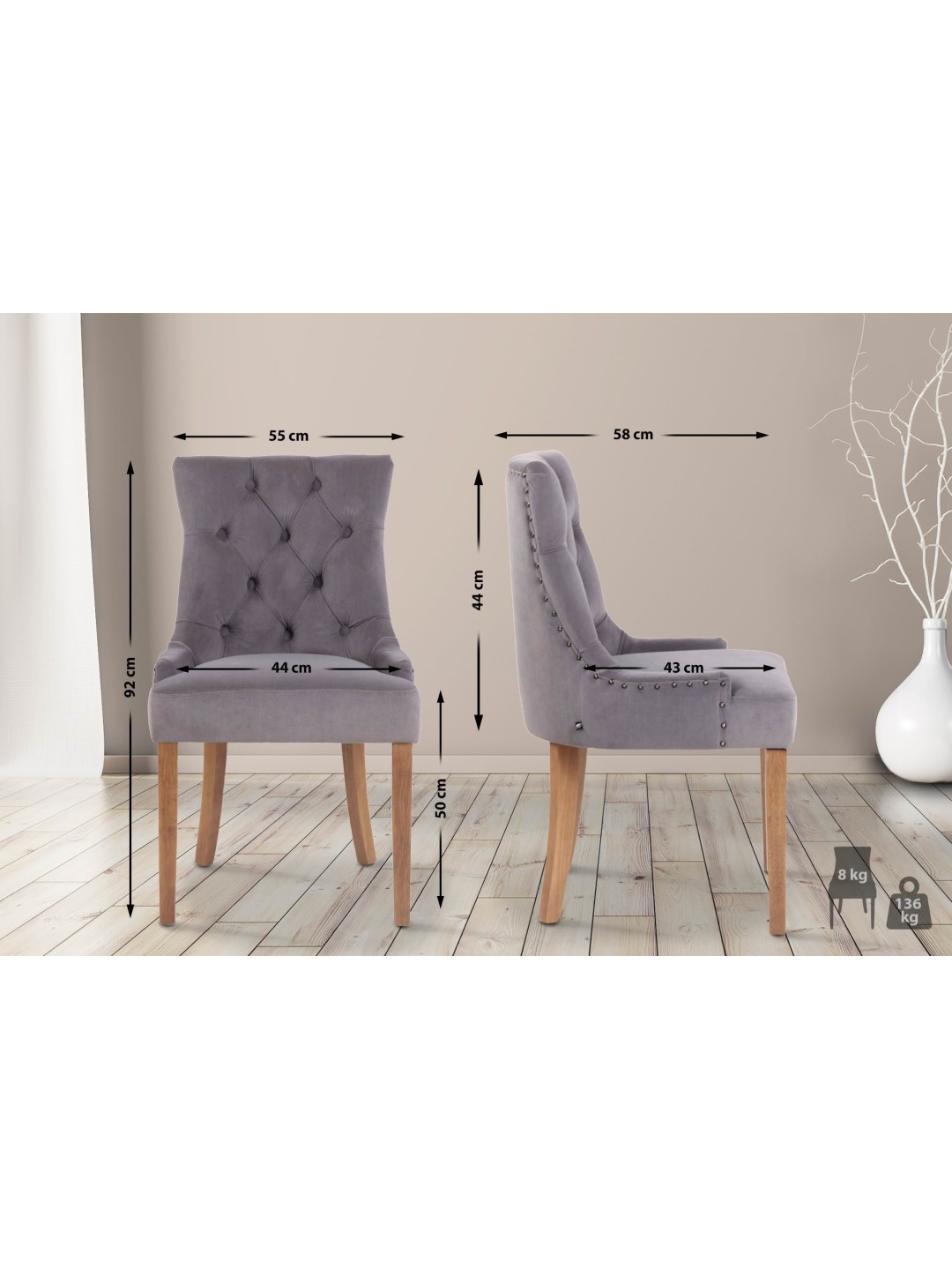 Silla de comedor Aberdeen terciopelo antiguo-claro, gris