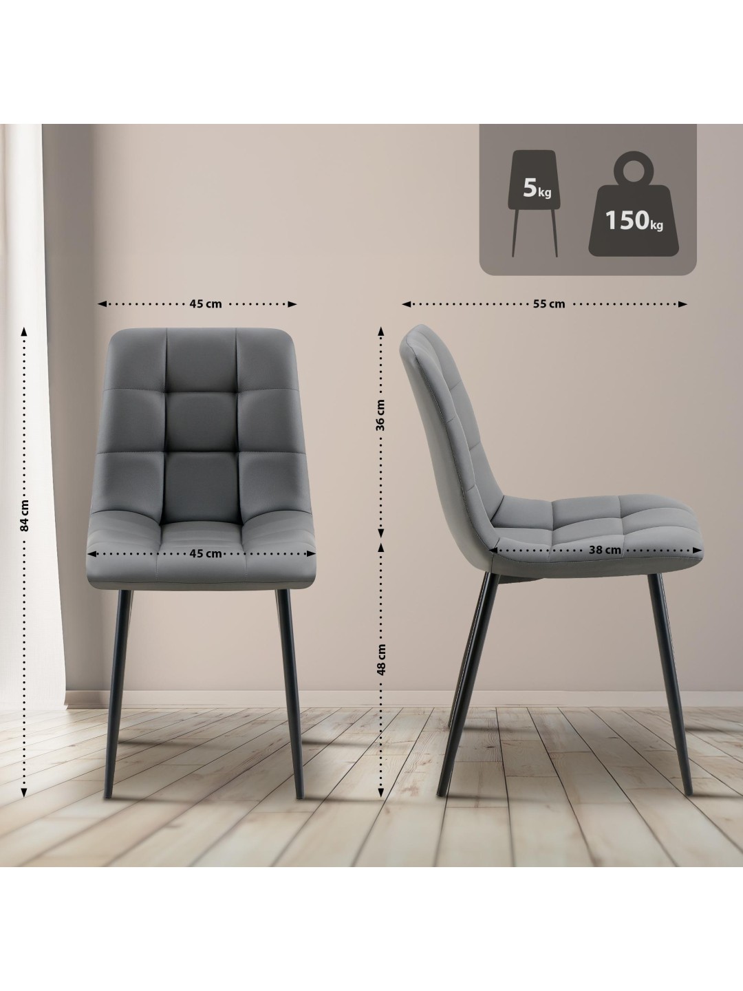 Silla de comedor Antibes piel sintética, gris oscuro