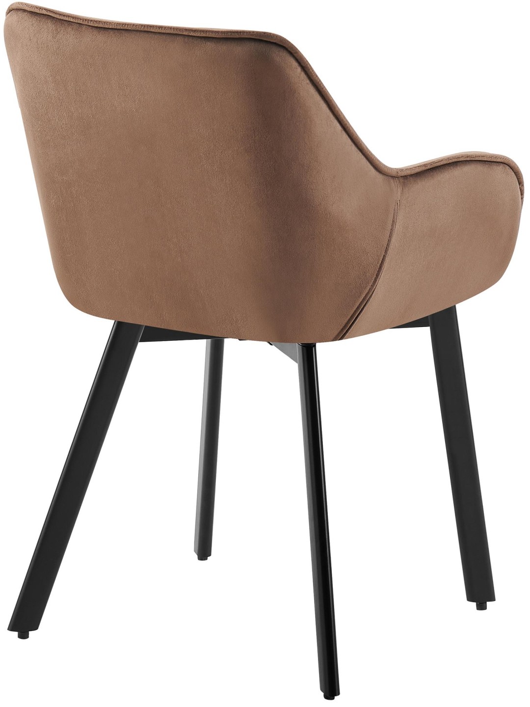 La estructura metálica de cuatro patas promete estabilidad y un soporte seguro. La silla tapizada se puede cargar sin problemas con hasta 150 kilogramos. Los protectores de suelo debajo de las patas de la silla evitan daños en suelos sensibles.