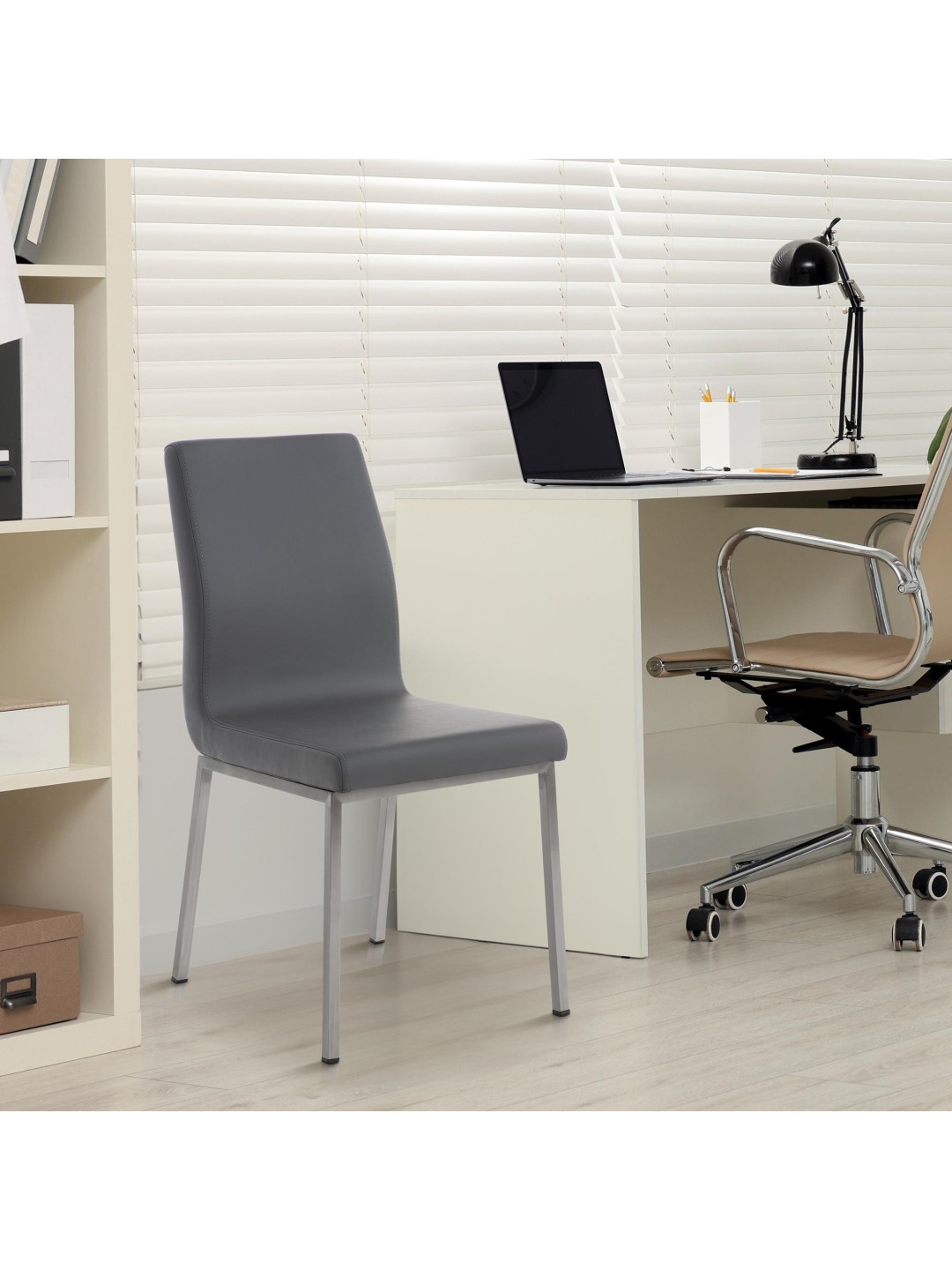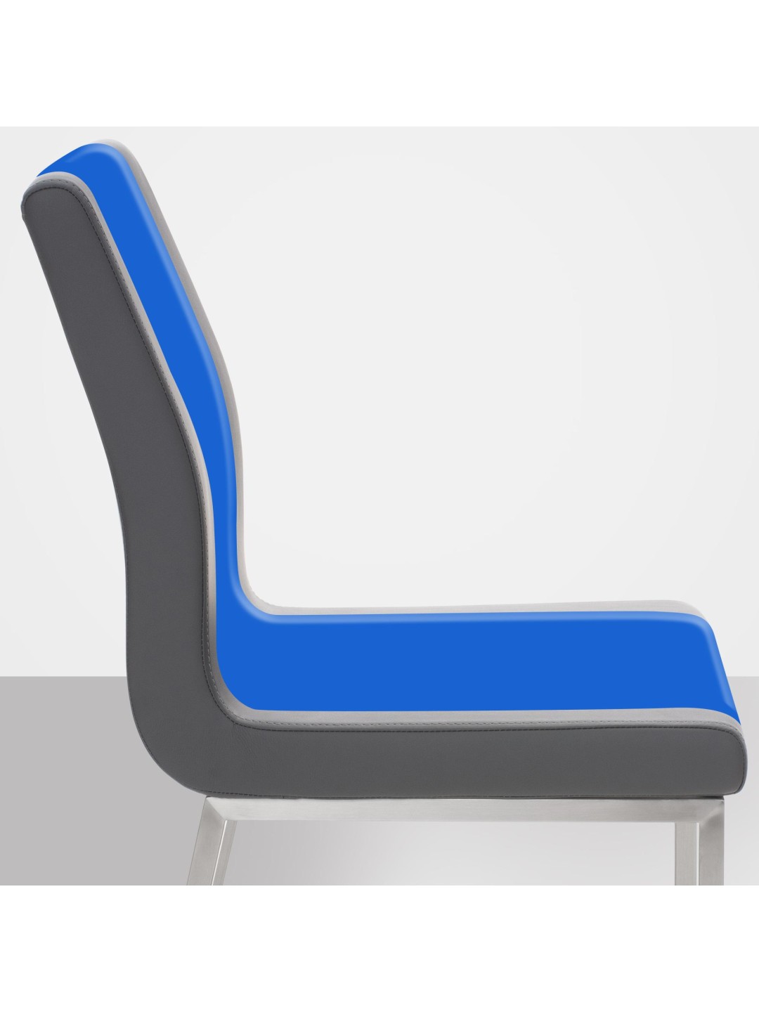 La silla de comedor tiene una estructura estable de cuatro patas de acero inoxidable cepillado mate. La silla Colmar puede cargar hasta 120 kilogramos sin dudarlo. Los protectores de suelo evitan daños en suelos sensibles.