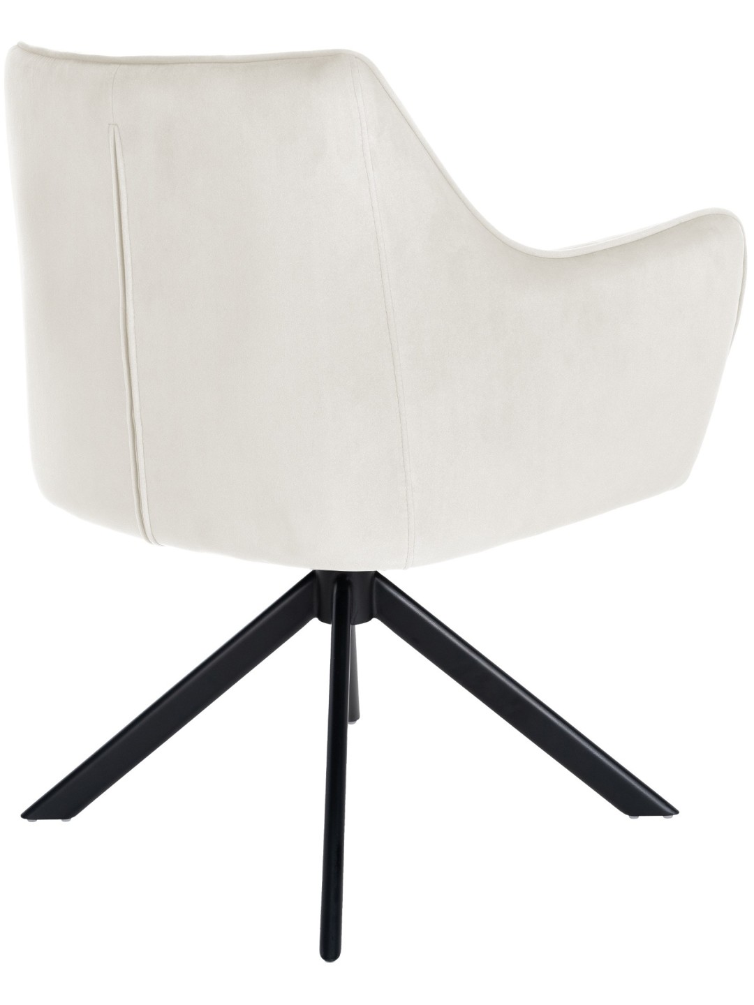 El generoso acolchado se extiende sobre el asiento, los reposabrazos y el respaldo de la silla, lo que significa que se beneficiará de un alto nivel de comodidad al sentarse. La estable estructura de cuatro patas, fabricada en acero inoxidable de alta calidad, está disponible en negro o plata y dispone de una práctica función giratoria. Esto permite que la carcasa del asiento gire 90 grados hacia la derecha y hacia la izquierda y vuelva a su posición inicial cuando se pone de pie. Los protectores de suelo también protegen los suelos sensibles contra daños.