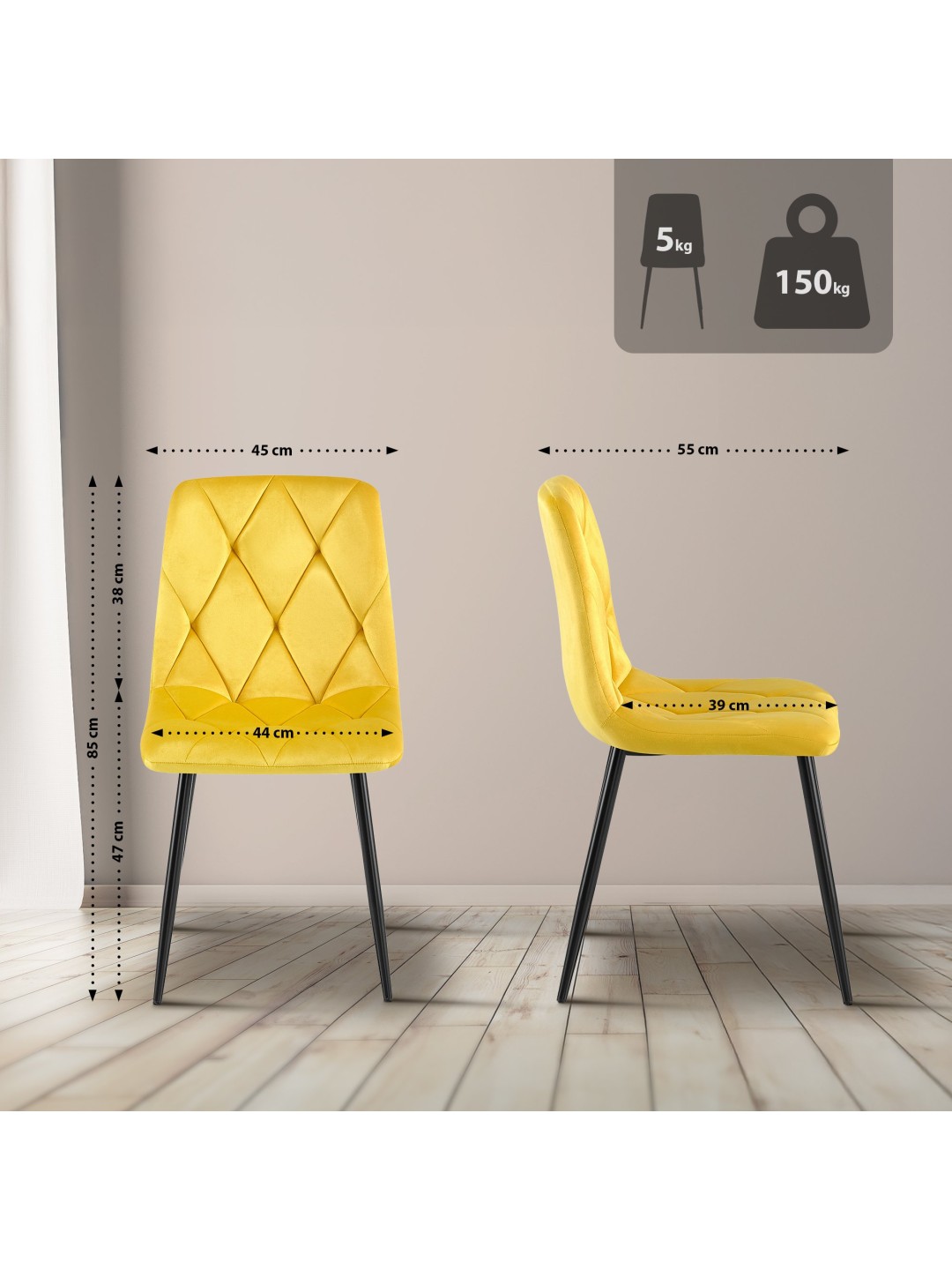 Silla de comedor de terciopelo Clairton, amarillo