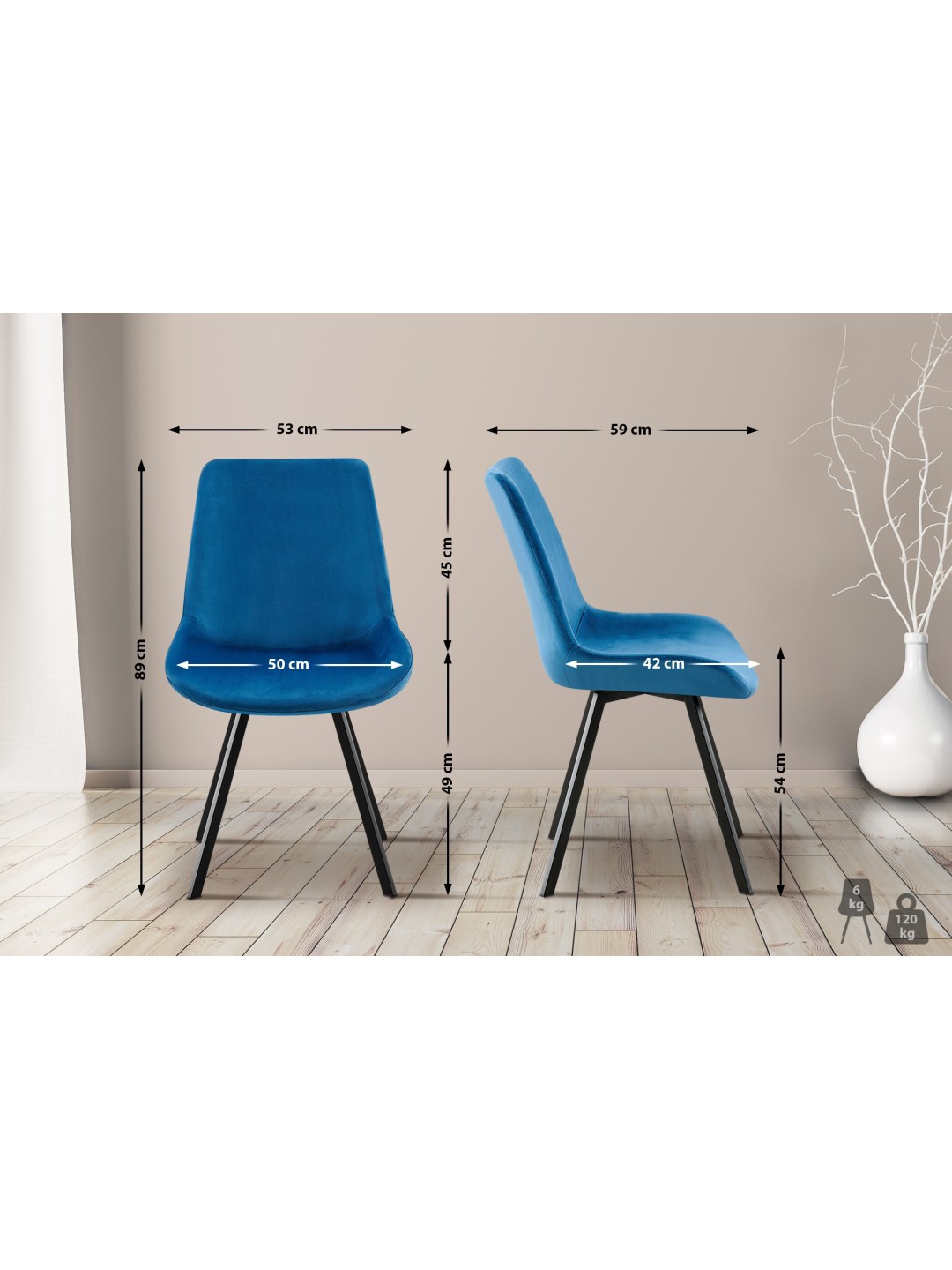 La silla tapizada tiene un asiento generosamente acolchado y, por lo tanto, permite sentarse cómodamente incluso durante un período de tiempo más largo. El confort del asiento se complementa con el respaldo y el mecanismo giratorio. Esto significa que la silla de cocina se puede girar fácilmente 360 grados.