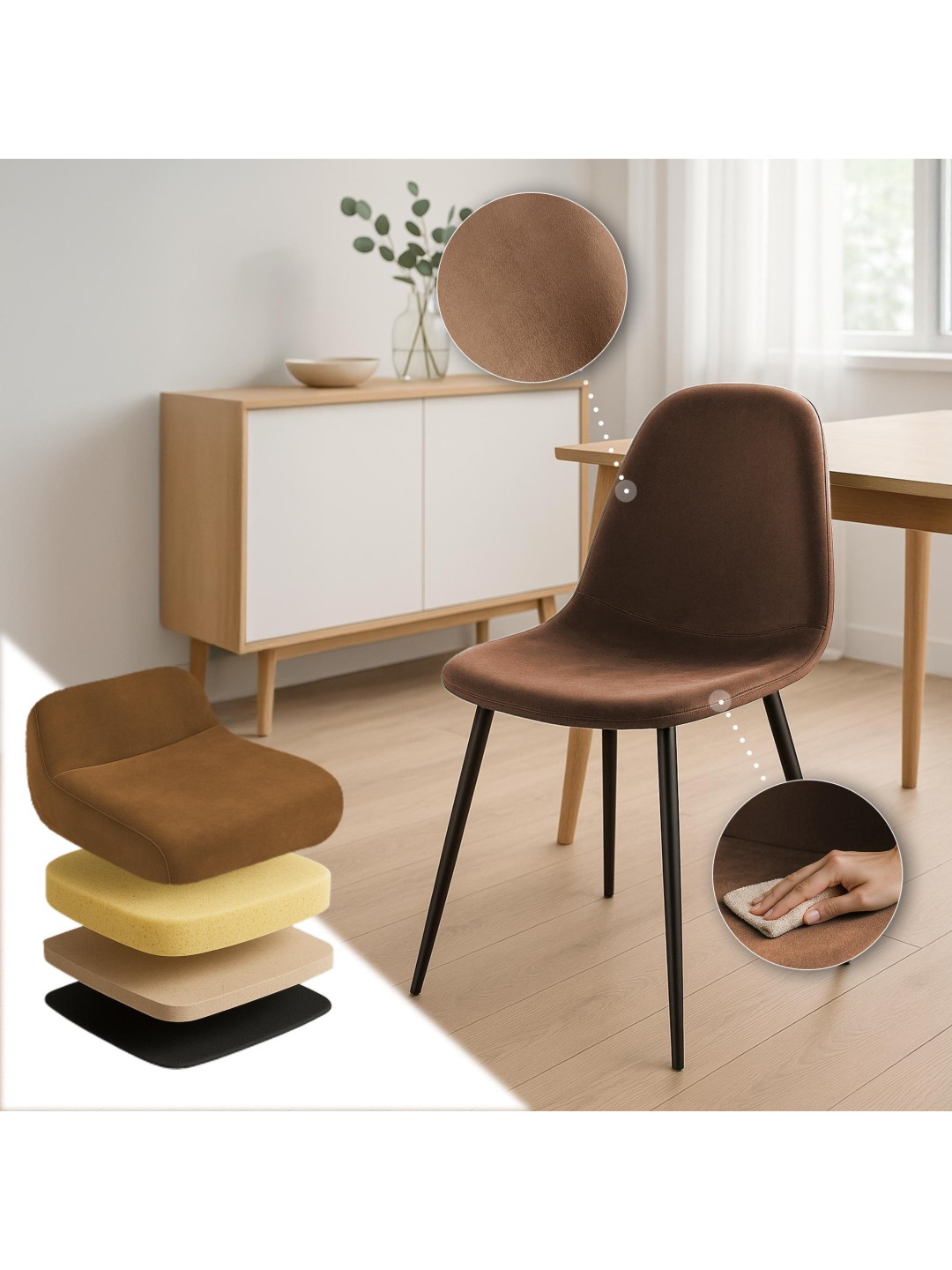 Silla de comedor de terciopelo Napier, marrón