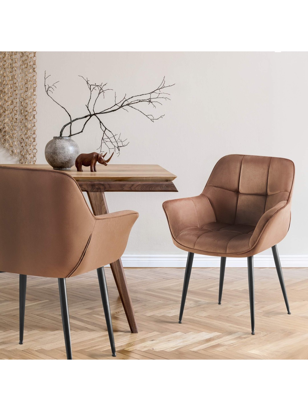 Silla de comedor de terciopelo Roseville, marrón