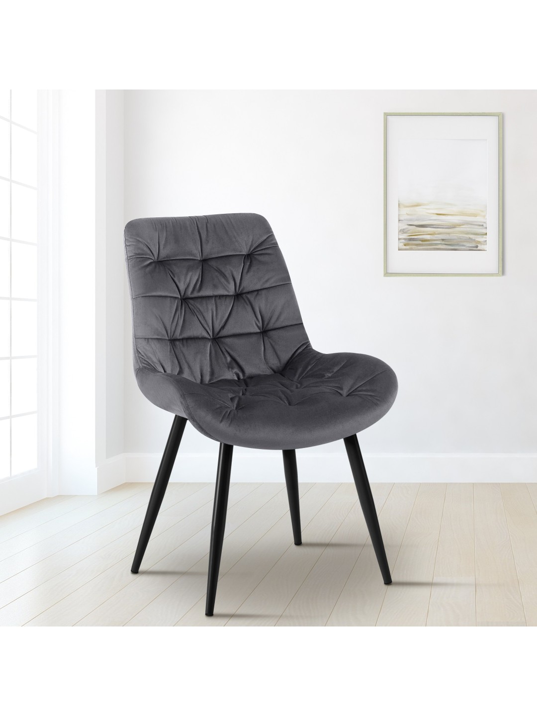 Silla de comedor de terciopelo Rossford, gris oscuro