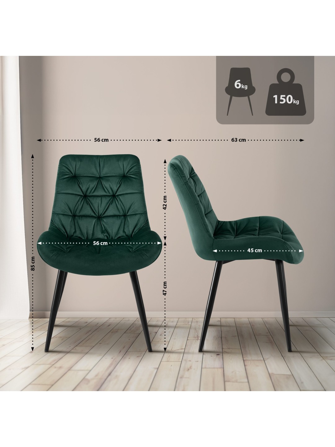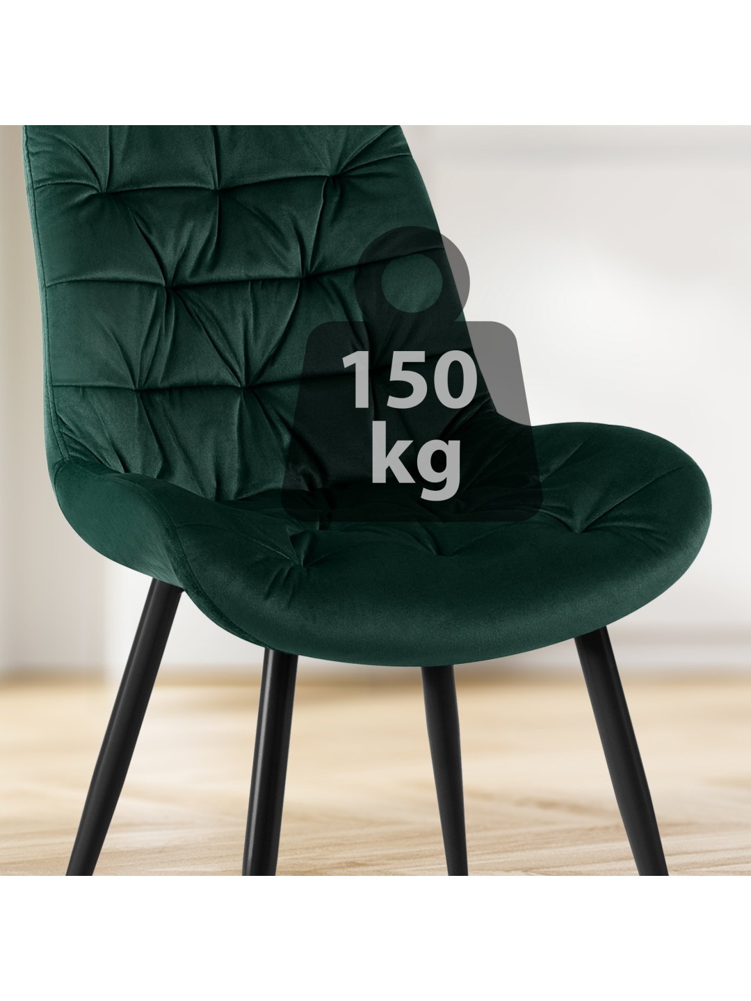 La clave para un asiento cómodo es el agradable acolchado sobre el asiento y el respaldo. Tanto la carcasa del asiento como el respaldo están cubiertos con una funda de terciopelo de fácil cuidado. El elegante patrón acolchado llama la atención.