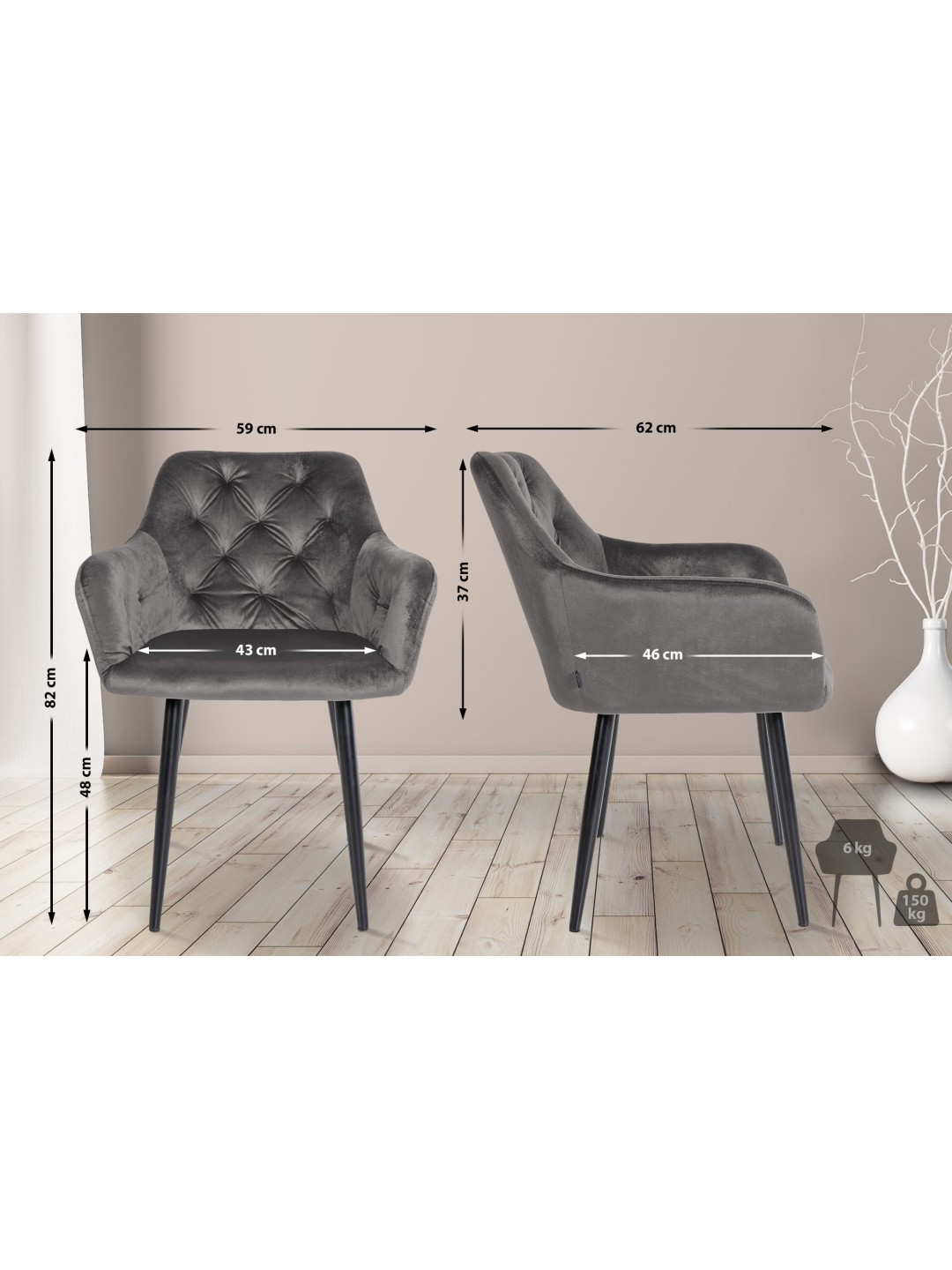 Silla de comedor de terciopelo Stanley, gris oscuro