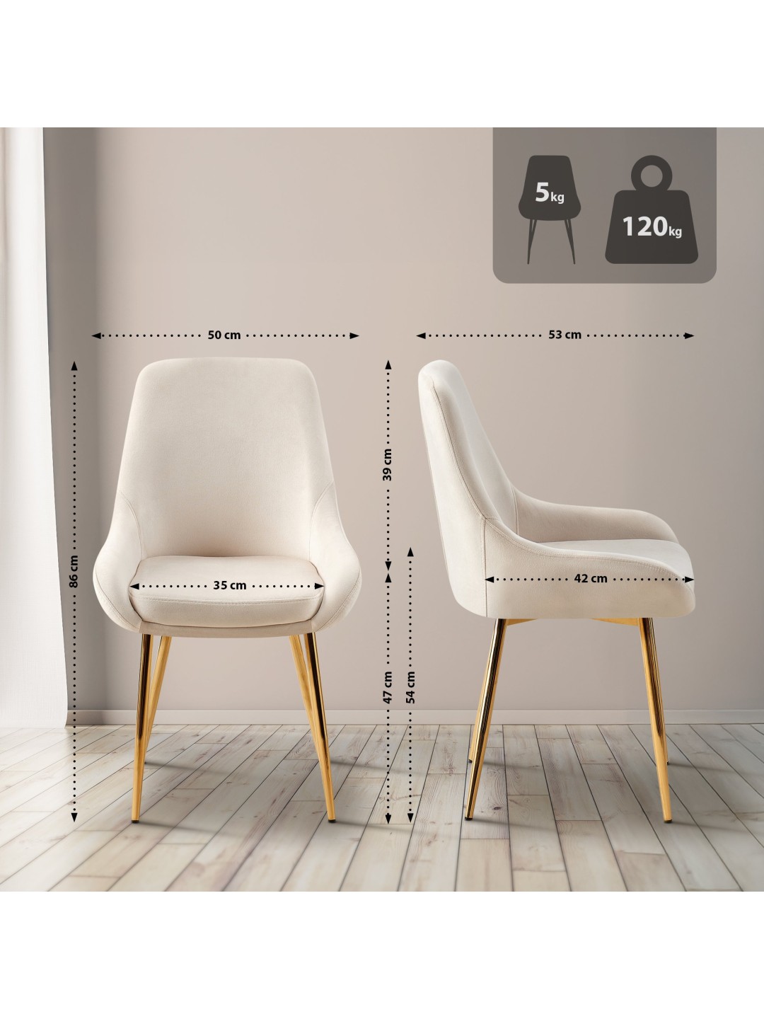 Experimente una experiencia de asiento cómoda y elegante con la silla de comedor Elmira. Esta moderna silla de comedor es el complemento perfecto para cualquier comedor gracias a su elegante diseño fabricado en terciopelo de alta calidad. La sólida elaboración y la construcción robusta caracterizan a la silla Elmira, que puede soportar hasta 150 kg. Con una altura de asiento fija de 47 cm y un asiento acolchado, ofrece una comodidad óptima durante largos períodos de tiempo.