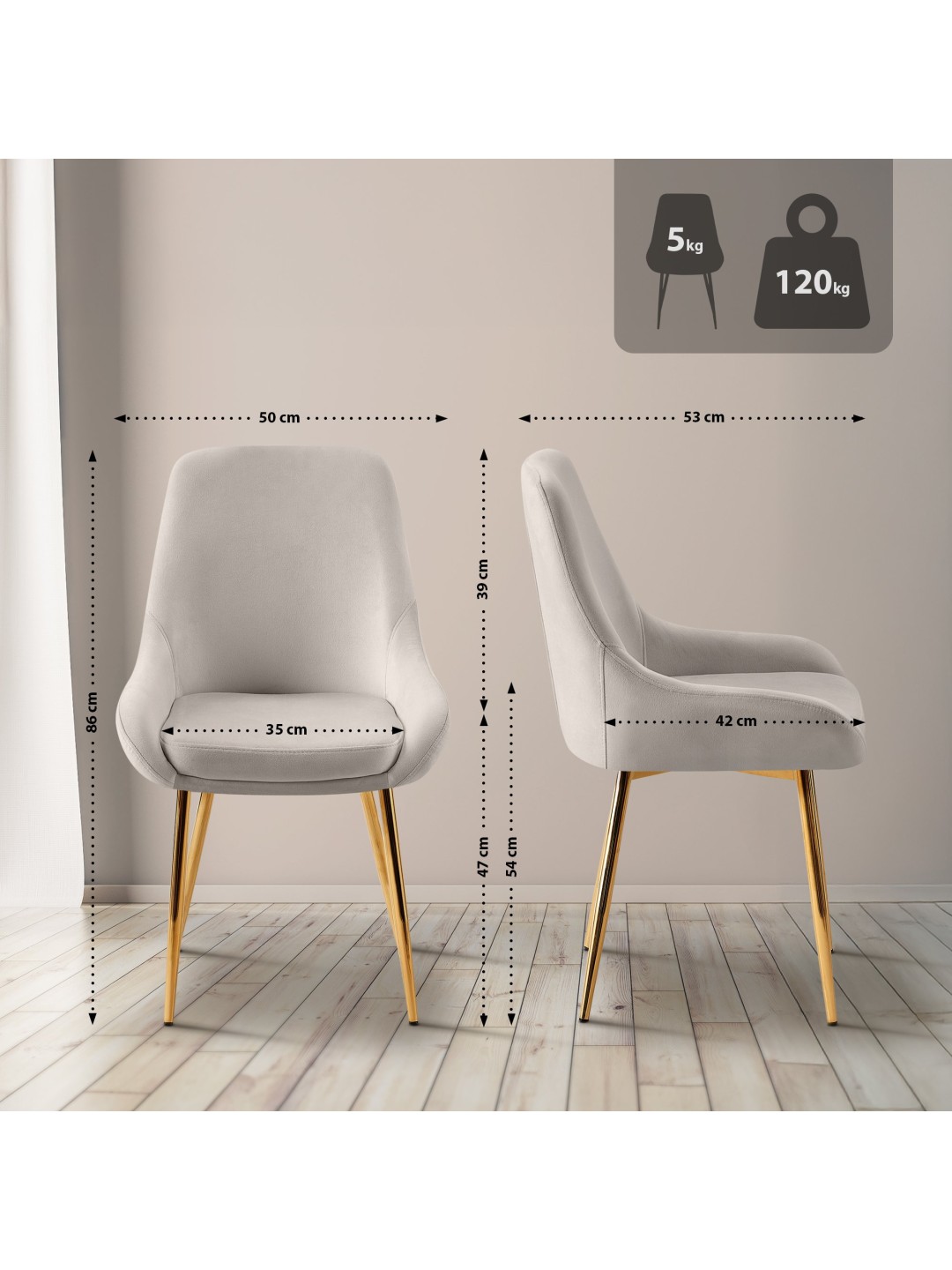 Silla de comedor Elmira terciopelo dorado, gris