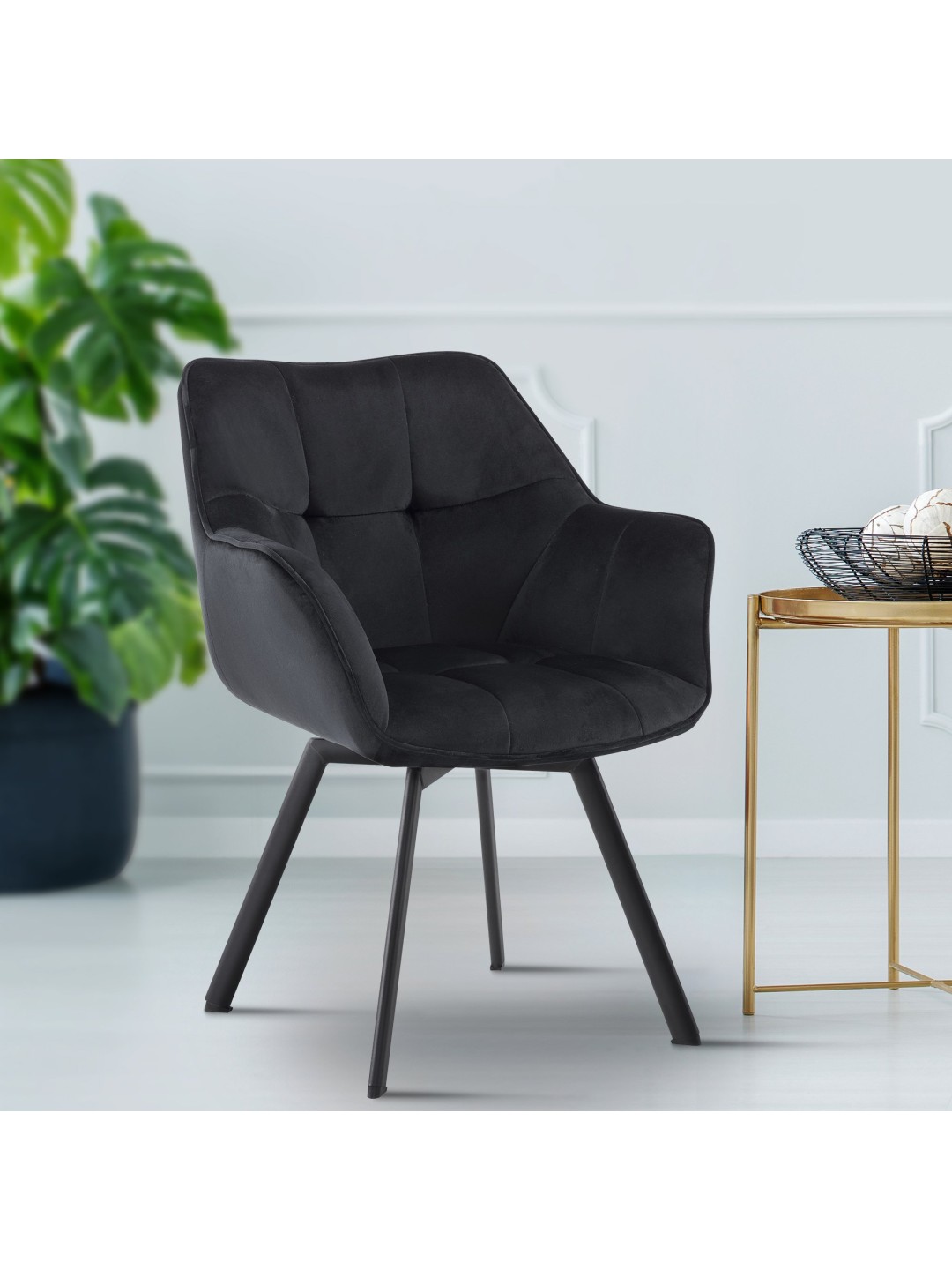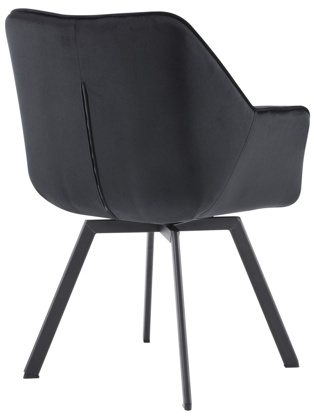 Esta silla de comedor Jordi combina un estilo moderno con un confort excepcional. La suave funda de terciopelo, en combinación con el generoso acolchado del asiento, el respaldo y los reposabrazos, garantiza una sensación cómoda al sentarse, incluso durante largas comidas o conversaciones. La robusta estructura de metal no sólo ofrece un soporte seguro, sino que también es extremadamente flexible gracias a la función giratoria integrada. La silla se puede girar 90 grados hacia la derecha y hacia la izquierda y vuelve automáticamente a su posición inicial.