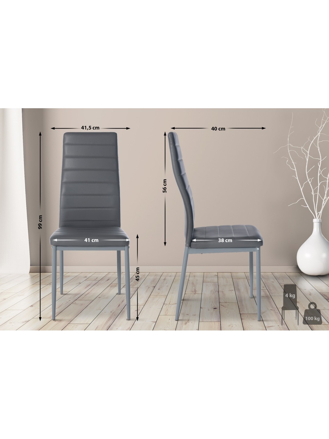 Silla de comedor Mayfair piel sintética, gris