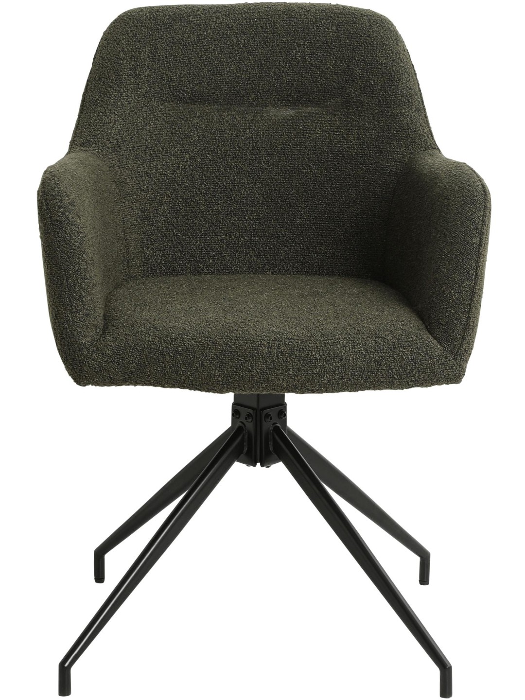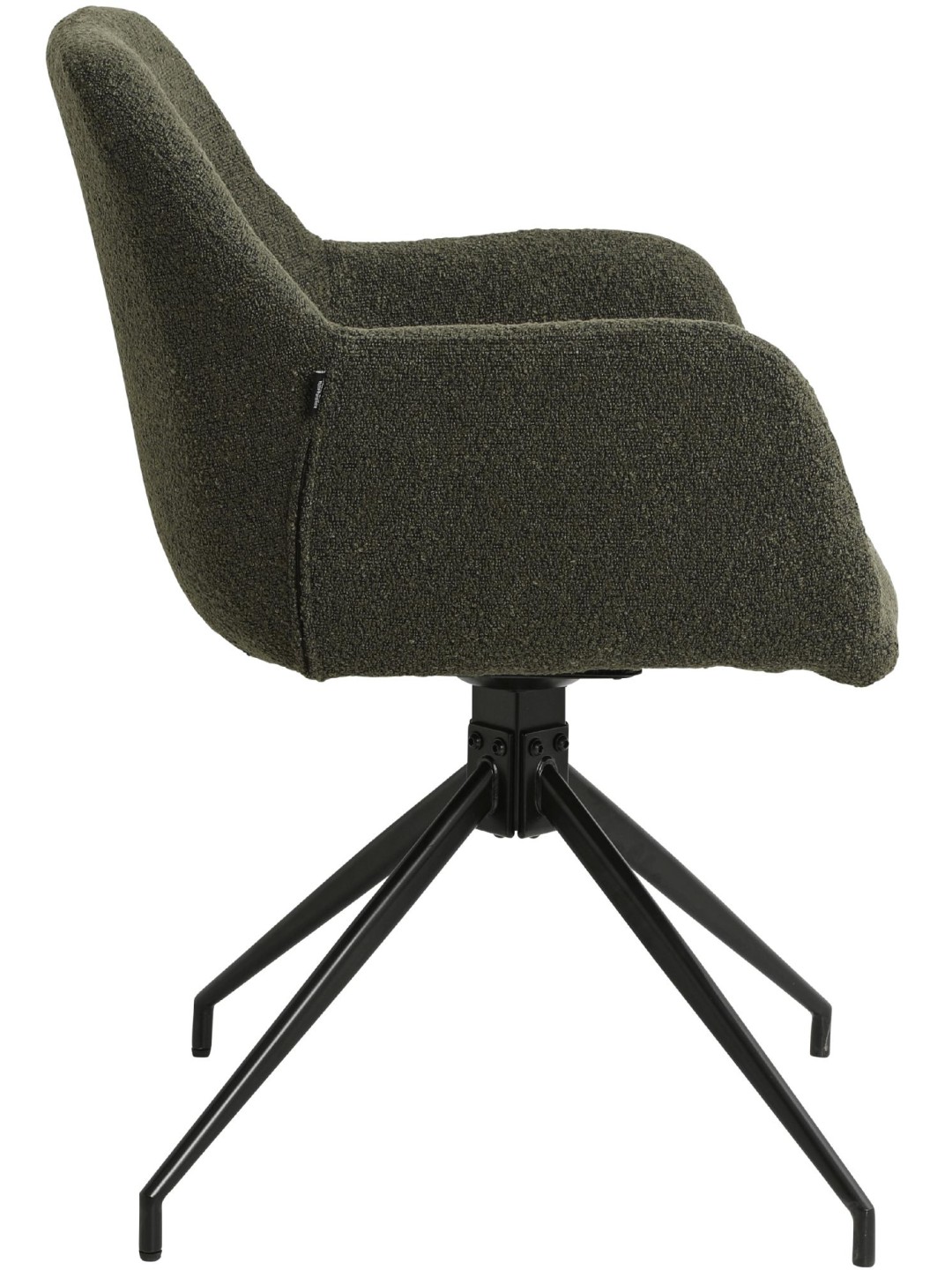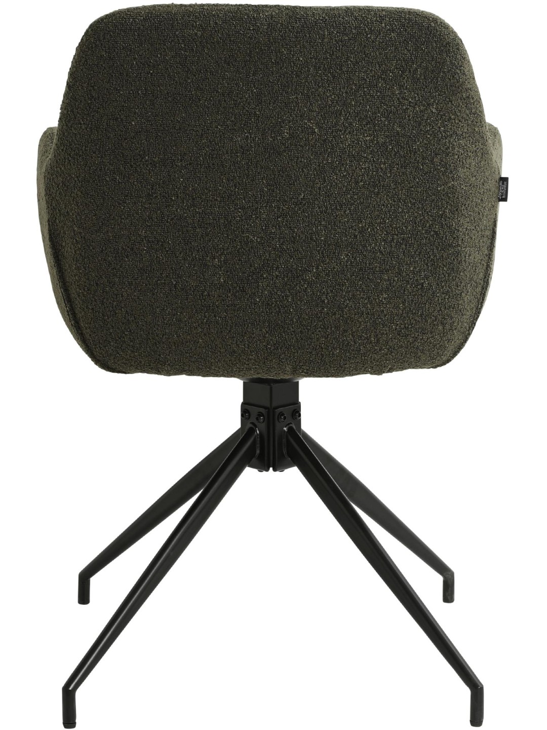 El agradable acolchado sobre el asiento, el respaldo y los reposabrazos es fundamental para un asiento cómodo. Tanto la carcasa del asiento como el respaldo están tapizados con un tejido de peluche grueso y cálido. La llamada función giratoria garantiza que el asiento pueda girarse en un rango de 180 grados, lo que proporciona una libertad de movimiento adicional.
