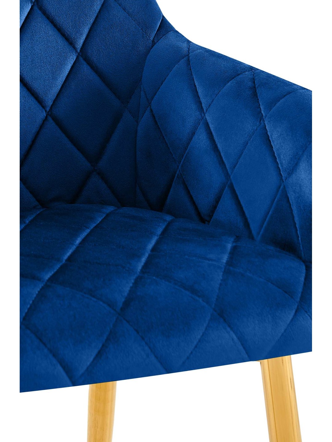 La silla tiene un asiento generosamente acolchado con un patrón acolchado en forma de rombo. La tapicería le permite sentarse cómodamente incluso durante un período de tiempo más largo. El confort del asiento se complementa con el respaldo y los reposabrazos.