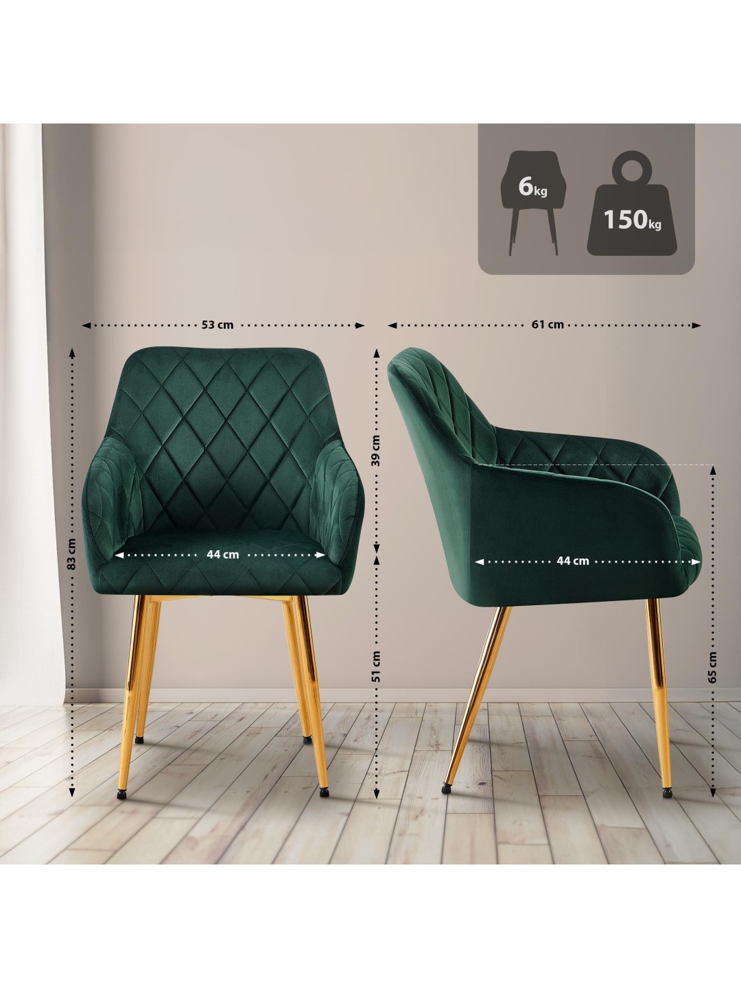 La estructura metálica de cuatro patas promete estabilidad y un soporte seguro. La silla tapizada se puede cargar sin problemas con hasta 150 kilogramos. Los protectores de suelo debajo de las patas de la silla evitan daños en los suelos sensibles.
