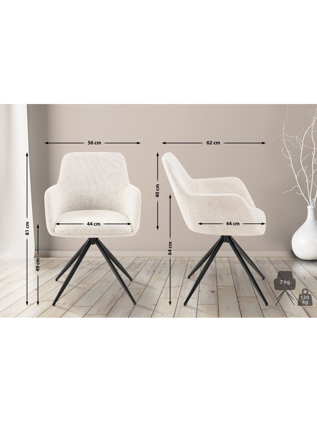Área del asiento (An x Pr): 44 x 44 cm