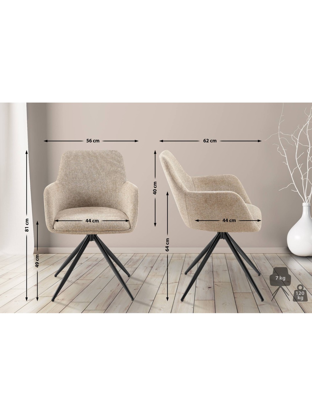 La base de esta silla tipo sillón es la estructura de cuatro patas de metal con recubrimiento en polvo en color negro mate. Esto significa que la silla de comedor Olema puede cargar con seguridad hasta 120 kilogramos.