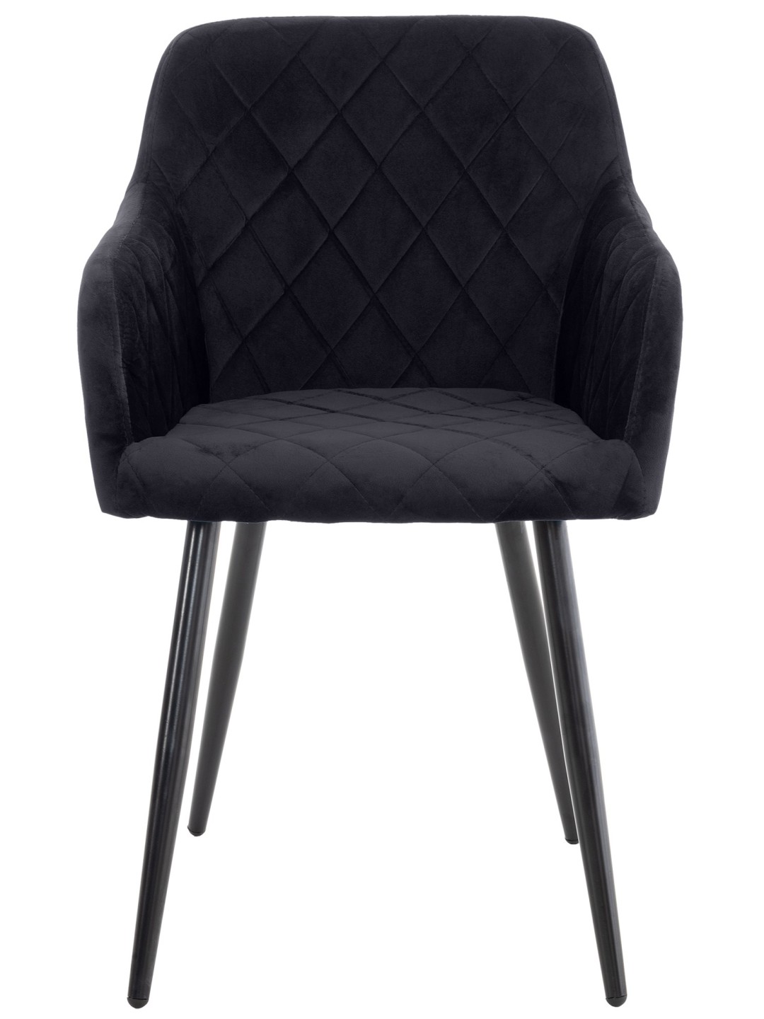 La silla de comedor Shila es una opción de asiento cómoda pero elegante para el uso diario. La silla tiene un asiento generosamente acolchado y, por lo tanto, permite sentarse cómodamente incluso durante un período de tiempo más largo. El confort del asiento se complementa con el respaldo y los reposabrazos. La estructura de metal de cuatro patas promete estabilidad y seguridad. Esta silla de comedor aporta un toque moderno y complementa maravillosamente cualquier entorno de vida. También hay protectores de suelo debajo de los pies para evitar que el suelo se raye. La silla de comedor está disponible con funda de terciopelo o tela.